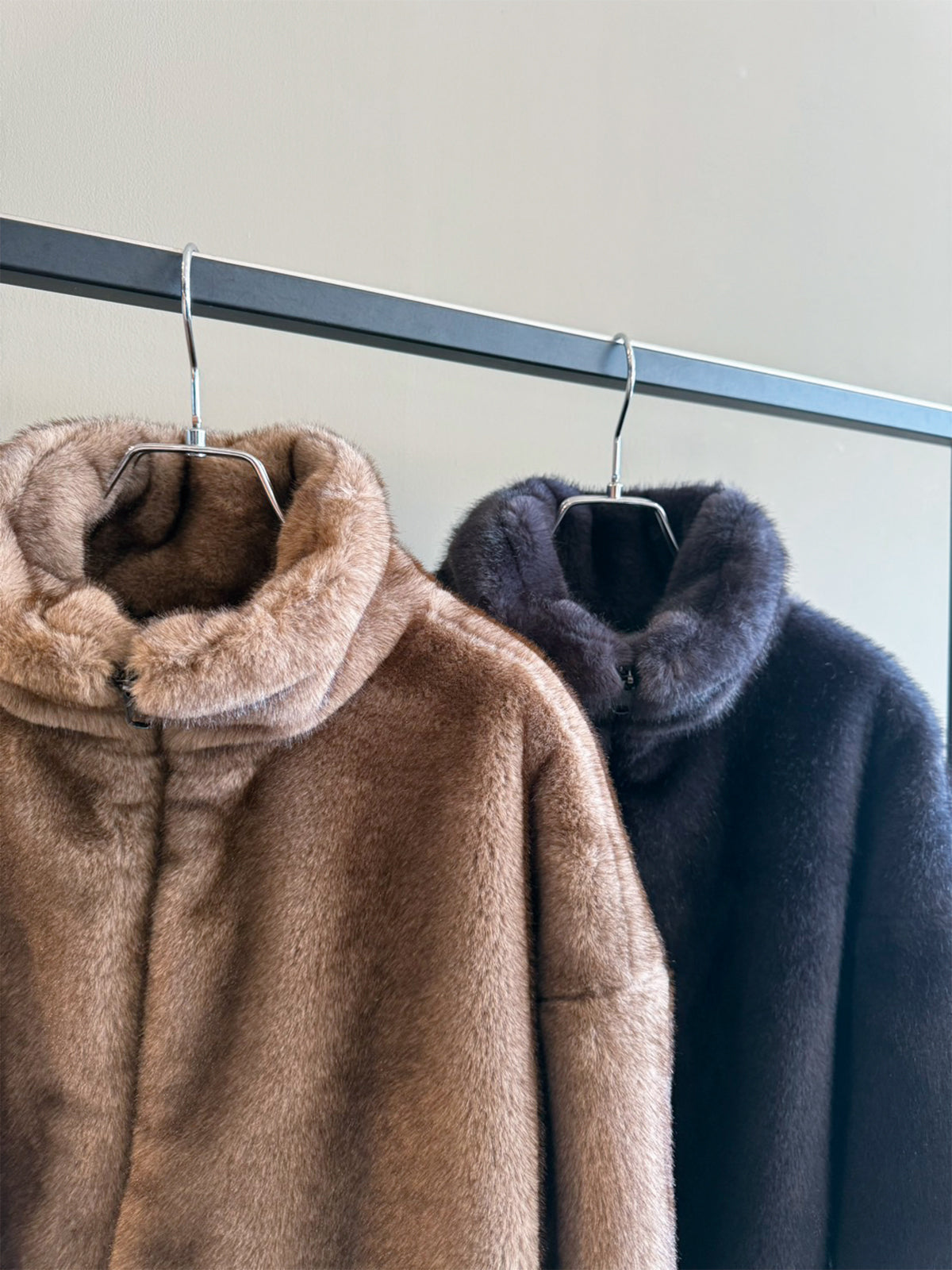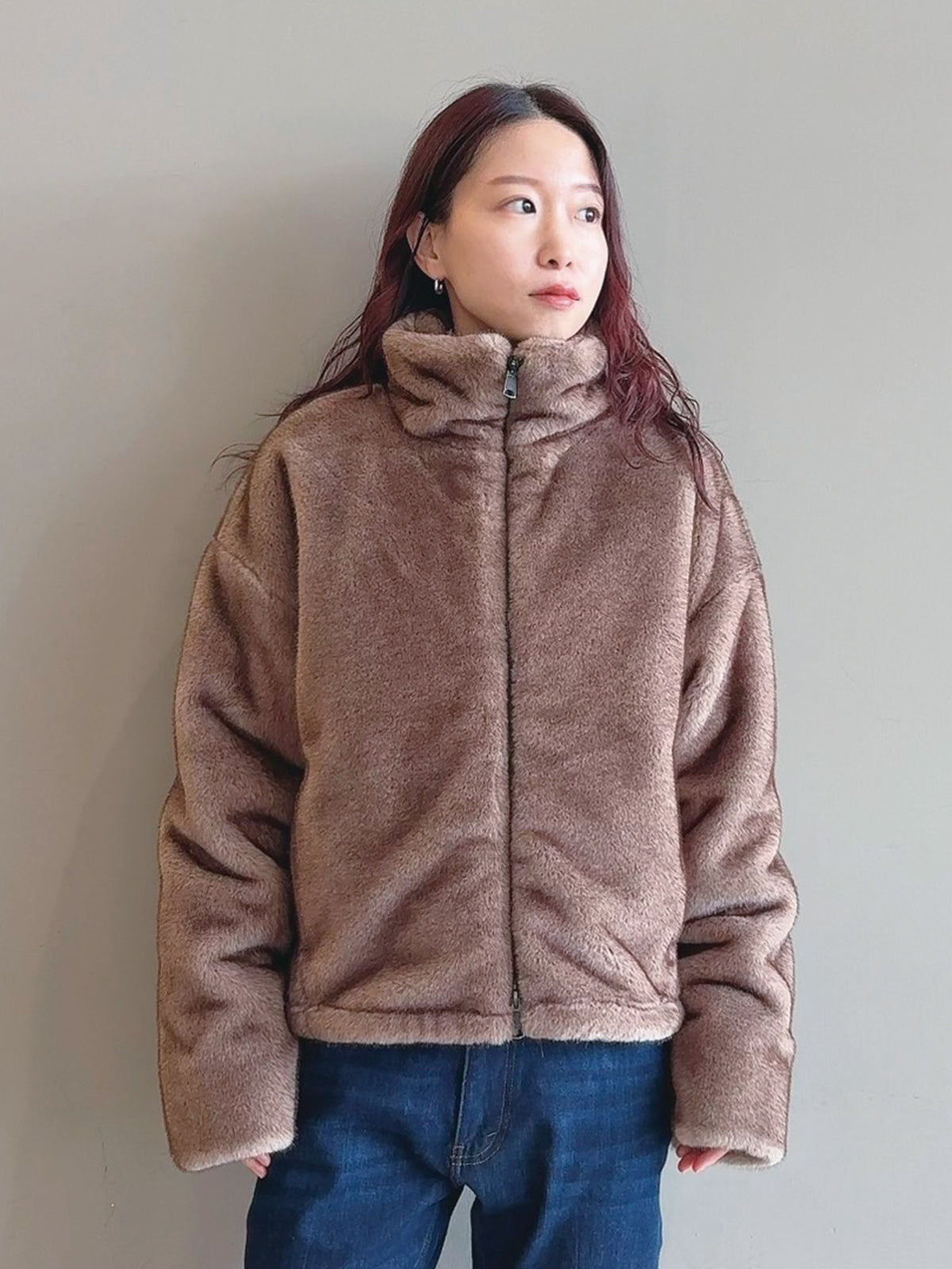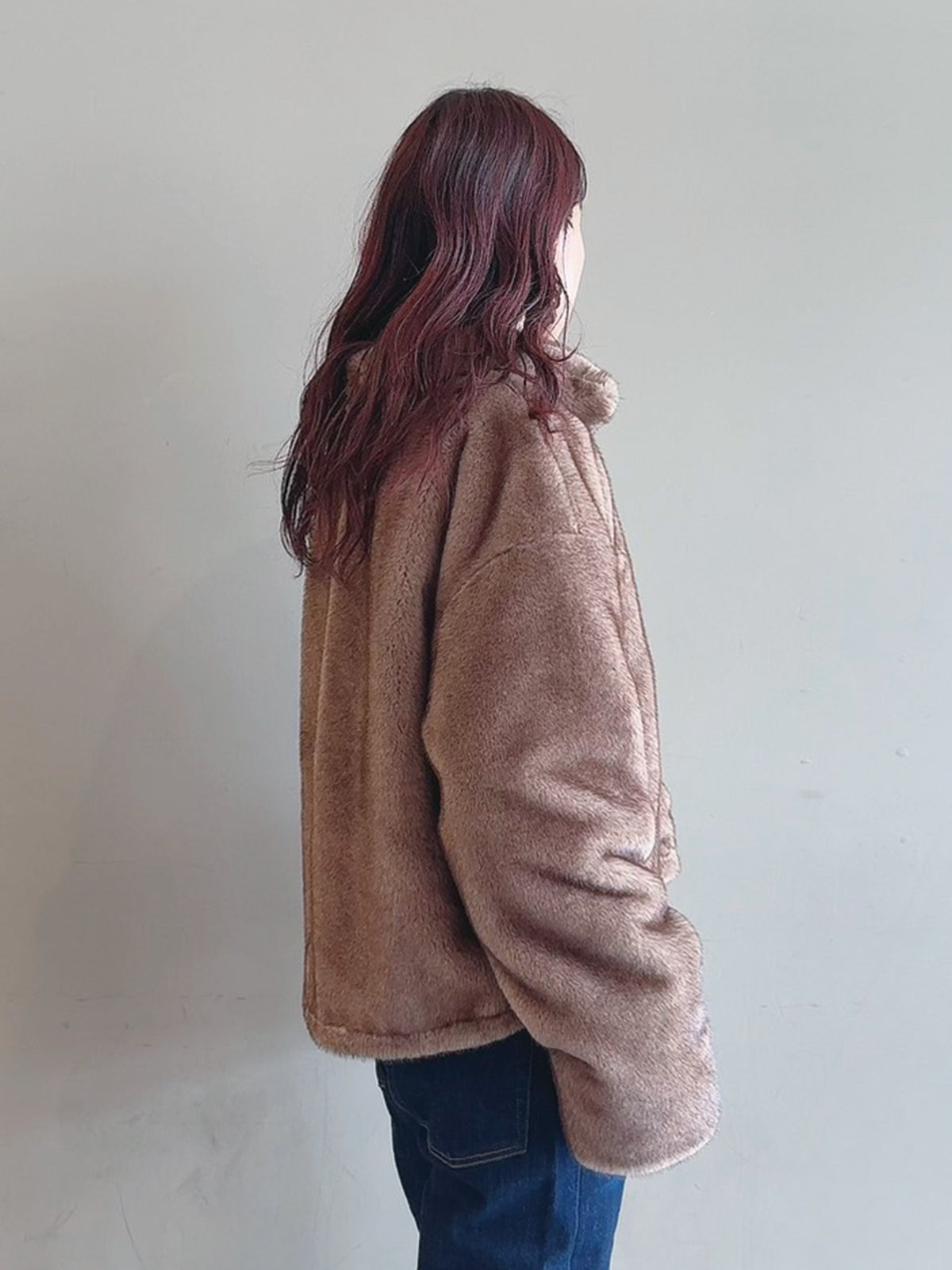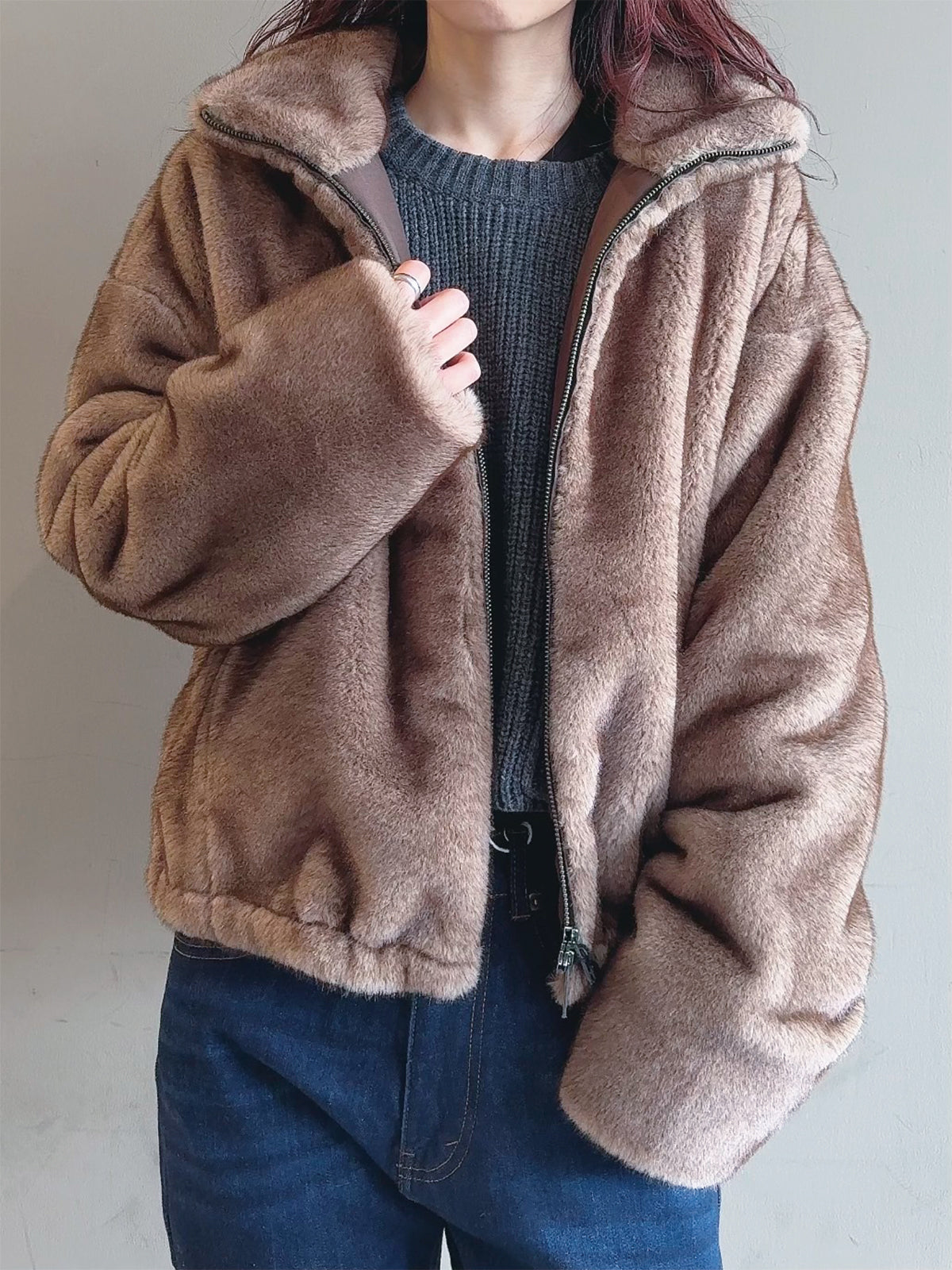 ヒップがすっぽりと隠れるたっぷりしたシルエットと、トレンド感のあるスタンドカラーのフェイクファーブルゾン。 フロントがジップタイプのデザインなのでカジュアルダウンし、ゴージャスになりやすいファーアイテムが普段使いしやすくなります。