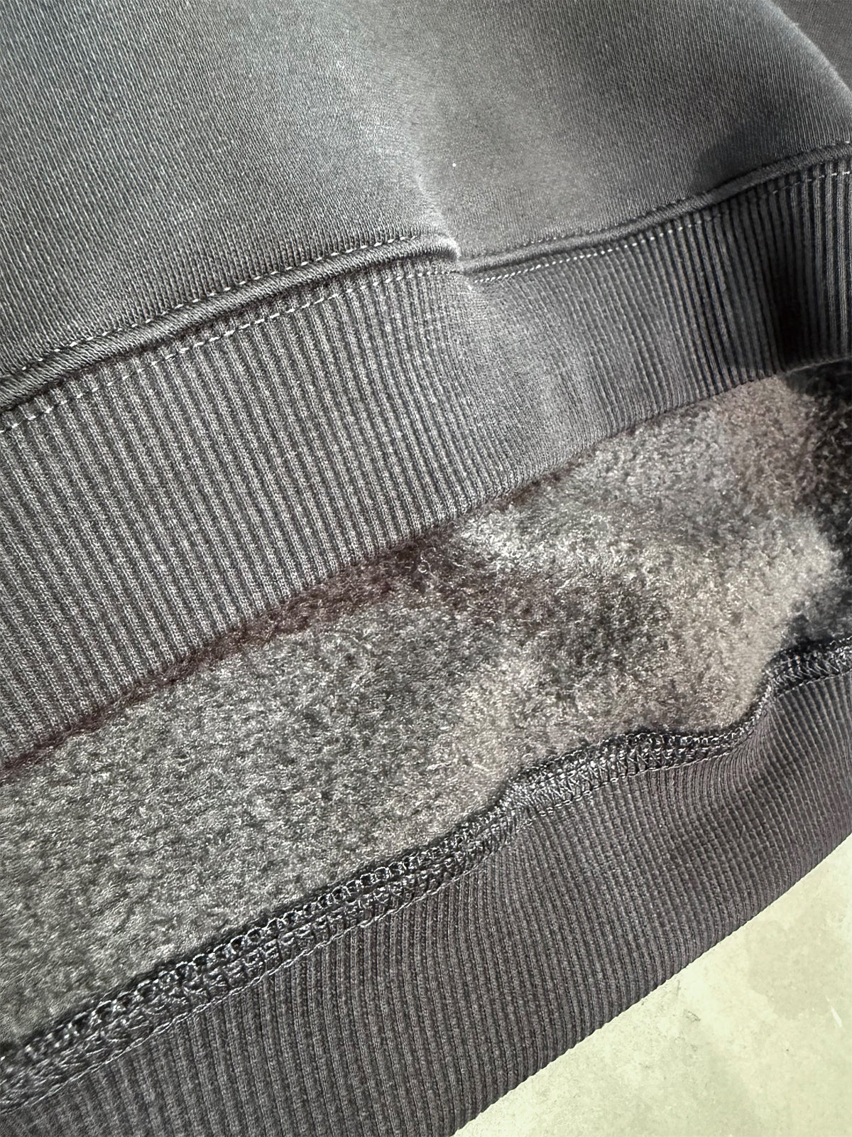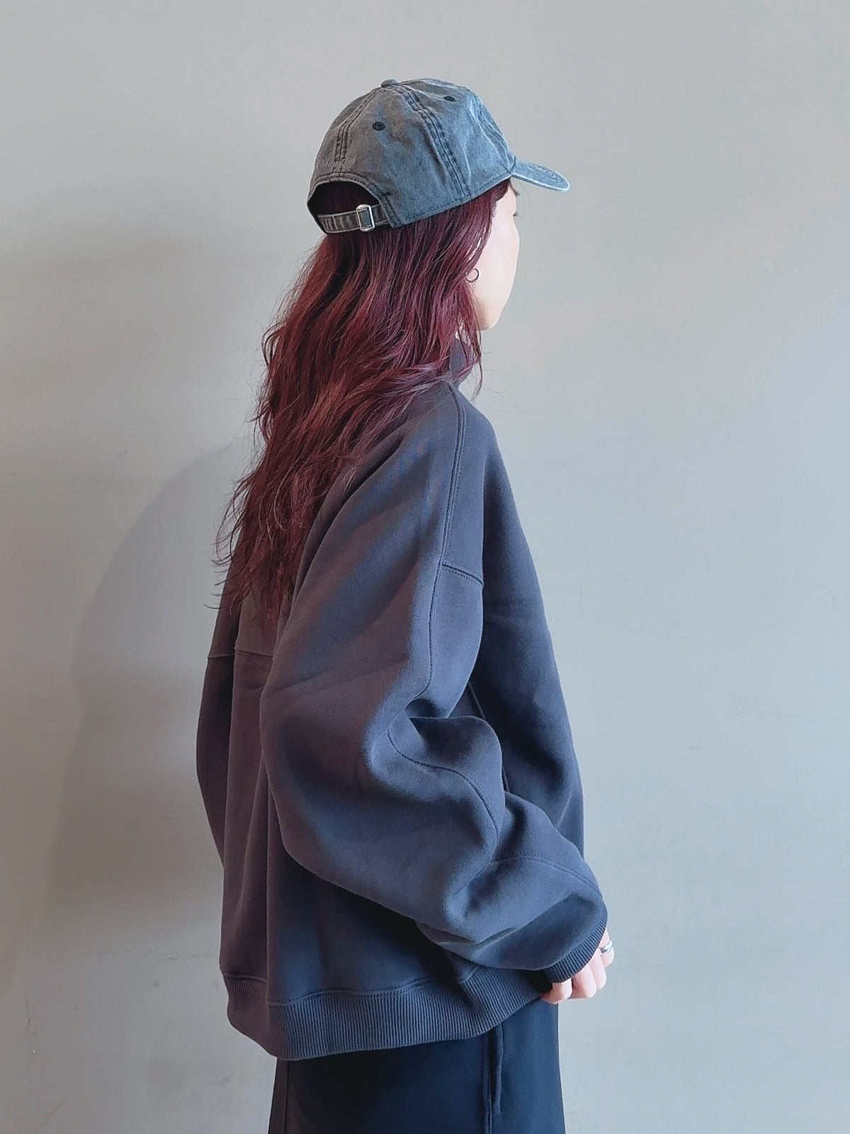 トレーナーのような素材感が魅力。暖かみのある裏起毛仕様で、冬の重ね着に最適です。