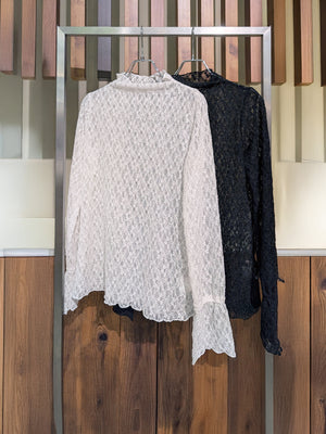 ストレッチレースハイネックトップス