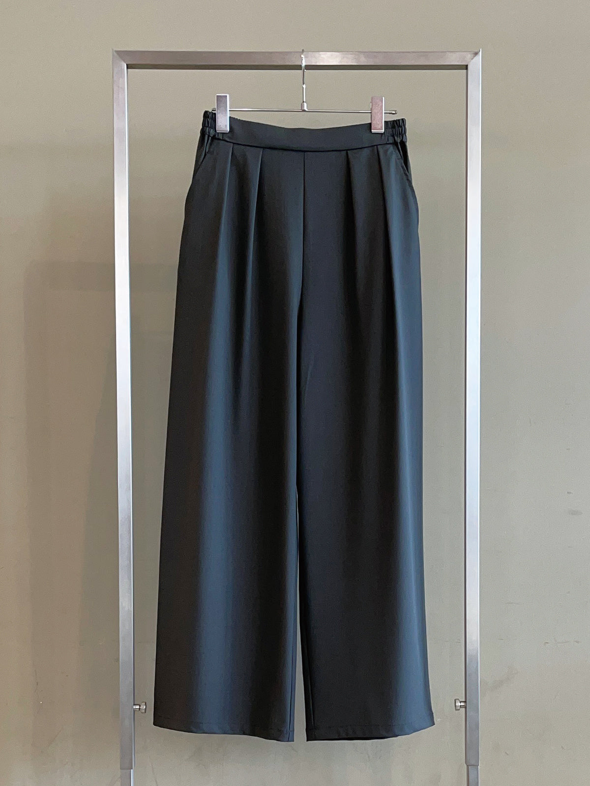 ゆったりとしたサイズ感で脚のラインを拾わず、ウエストはバックゴム仕様で楽ちんな履き心地。