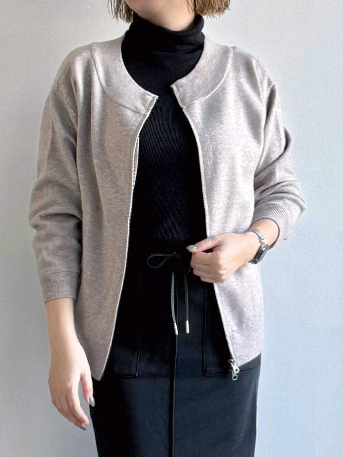 フロントは逆開ファスナー、バックにはロゴが入っていて前後着用可能です。ロゴの意味はフィンランドの地名です。