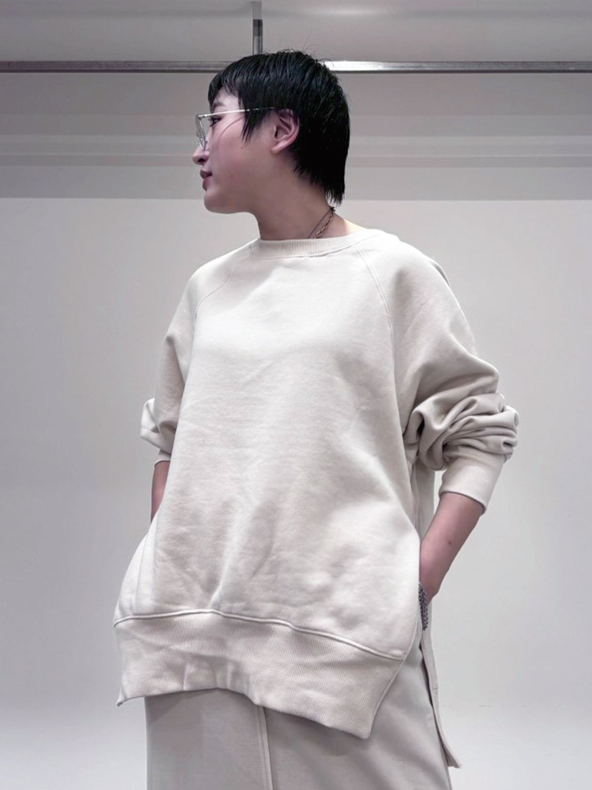 腰回りもまるっと隠れる安心丈のプルオーバー。