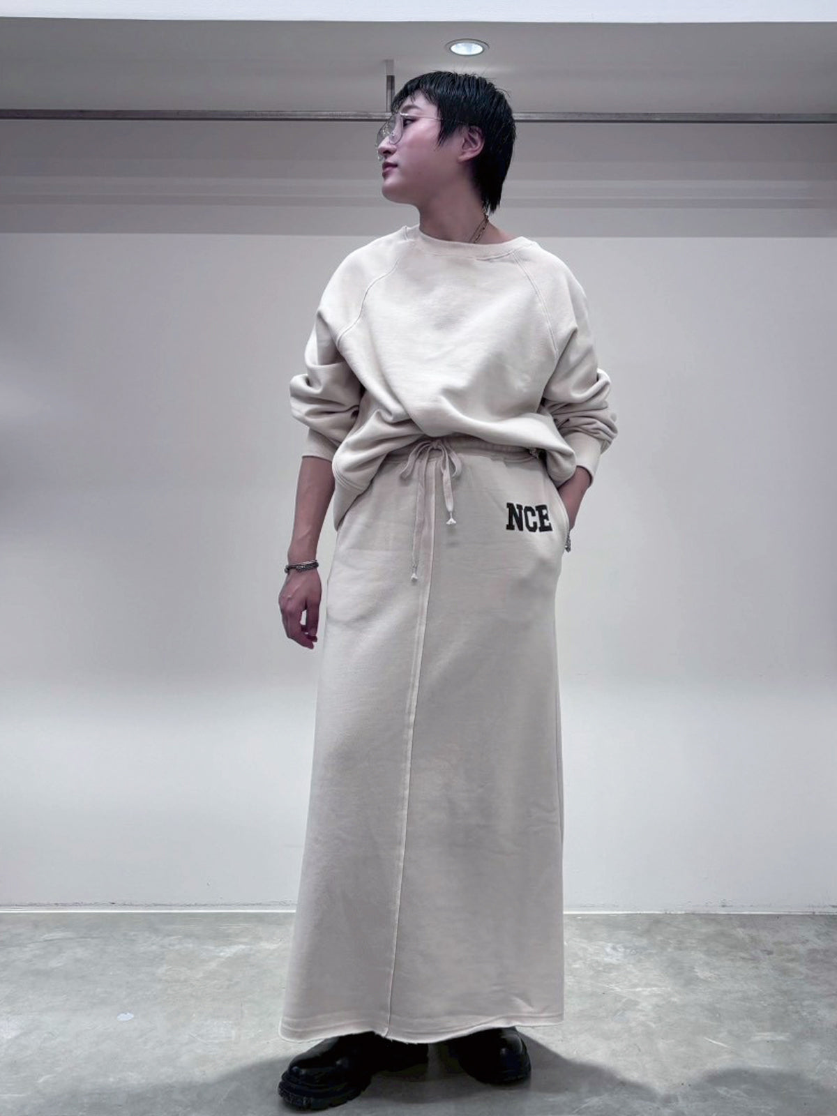 少しフレアな女性らしいシルエットにカレッジ風のロゴをプリントしました。きりっぱなしのデザインもポイント。