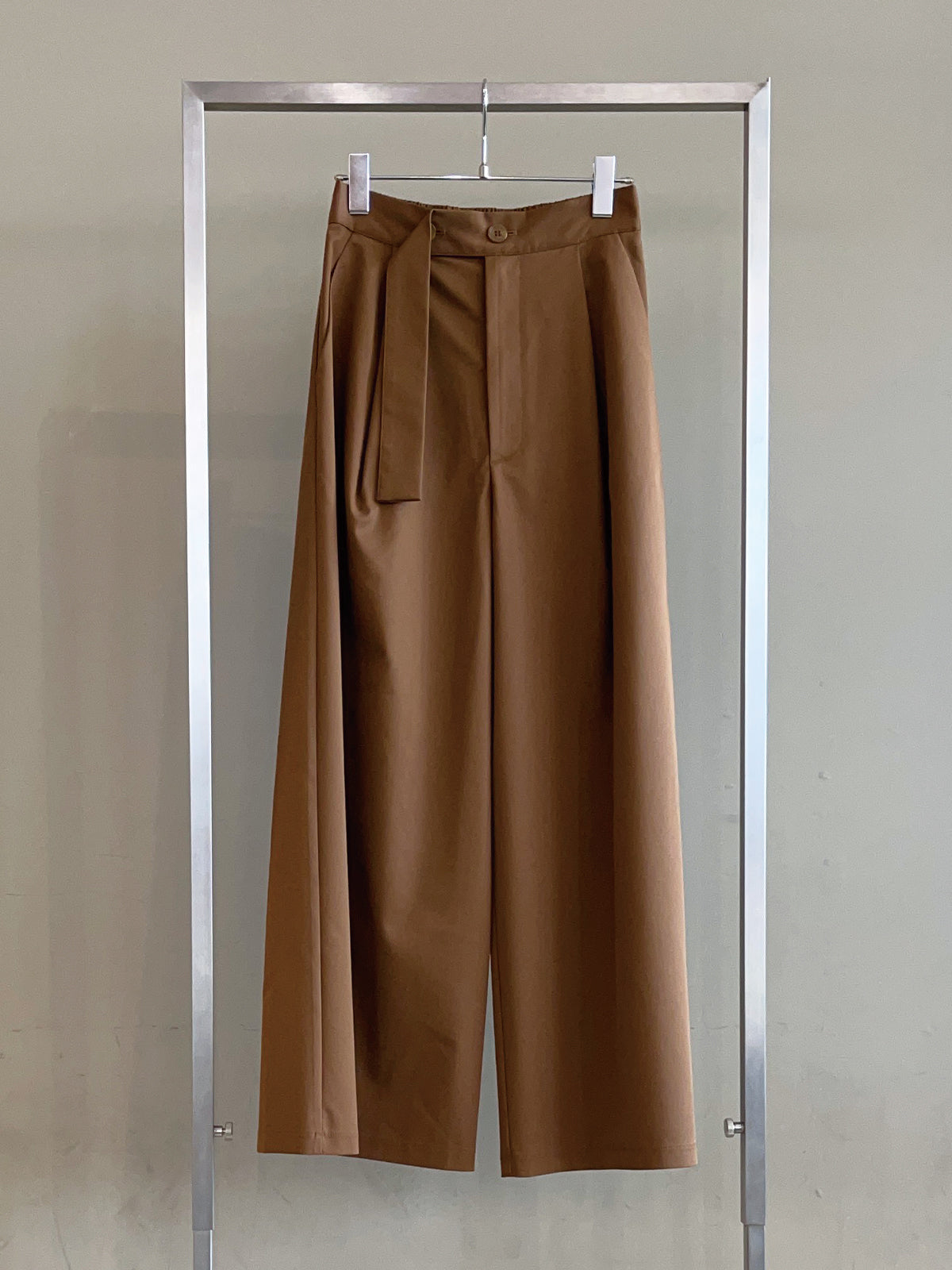 ウエストのベルトデザインとタックの立体感で、1本でサマになる存在感です。
