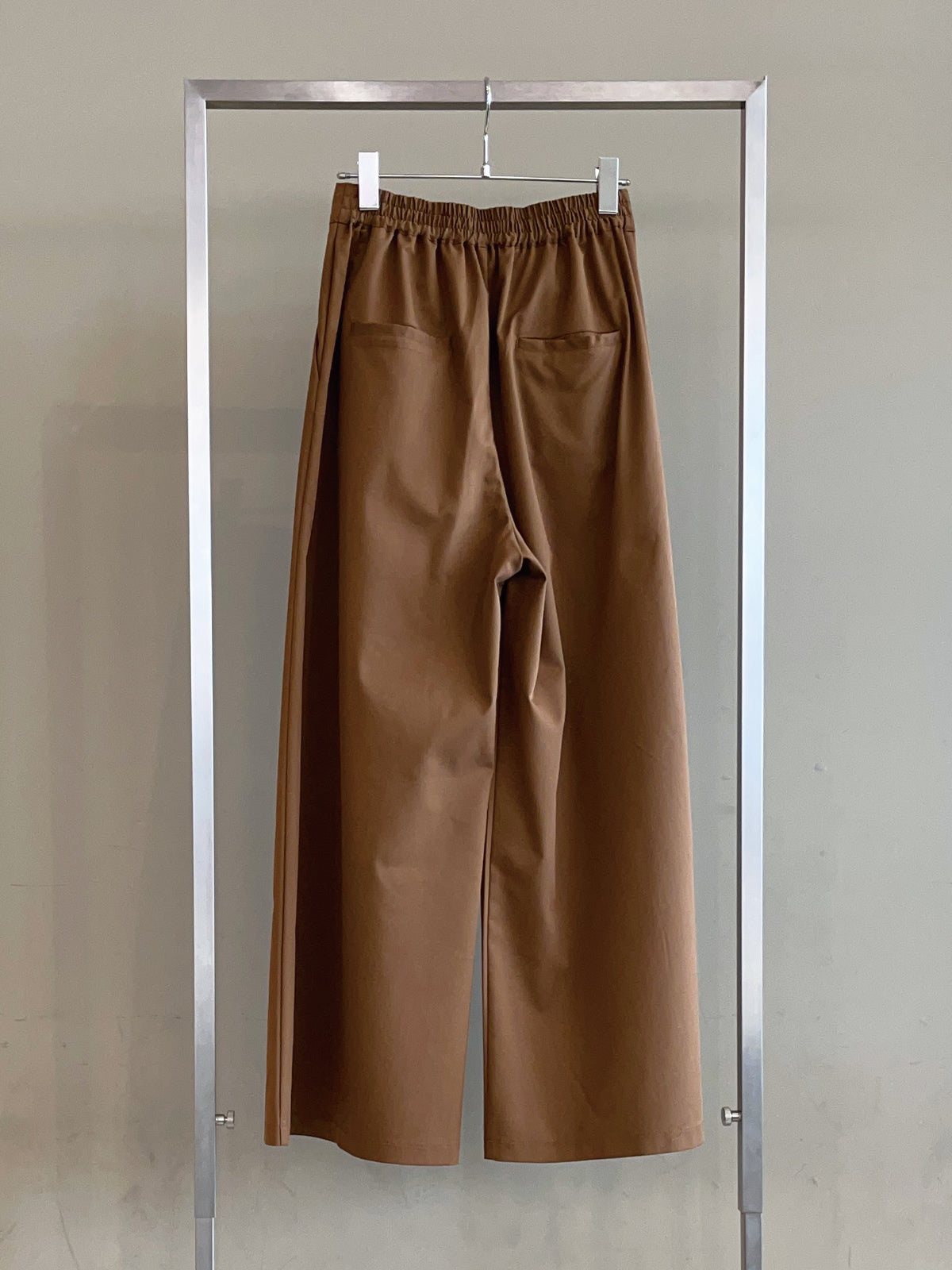 程よいハリ感とシンプルさが特徴のワイドパンツ。