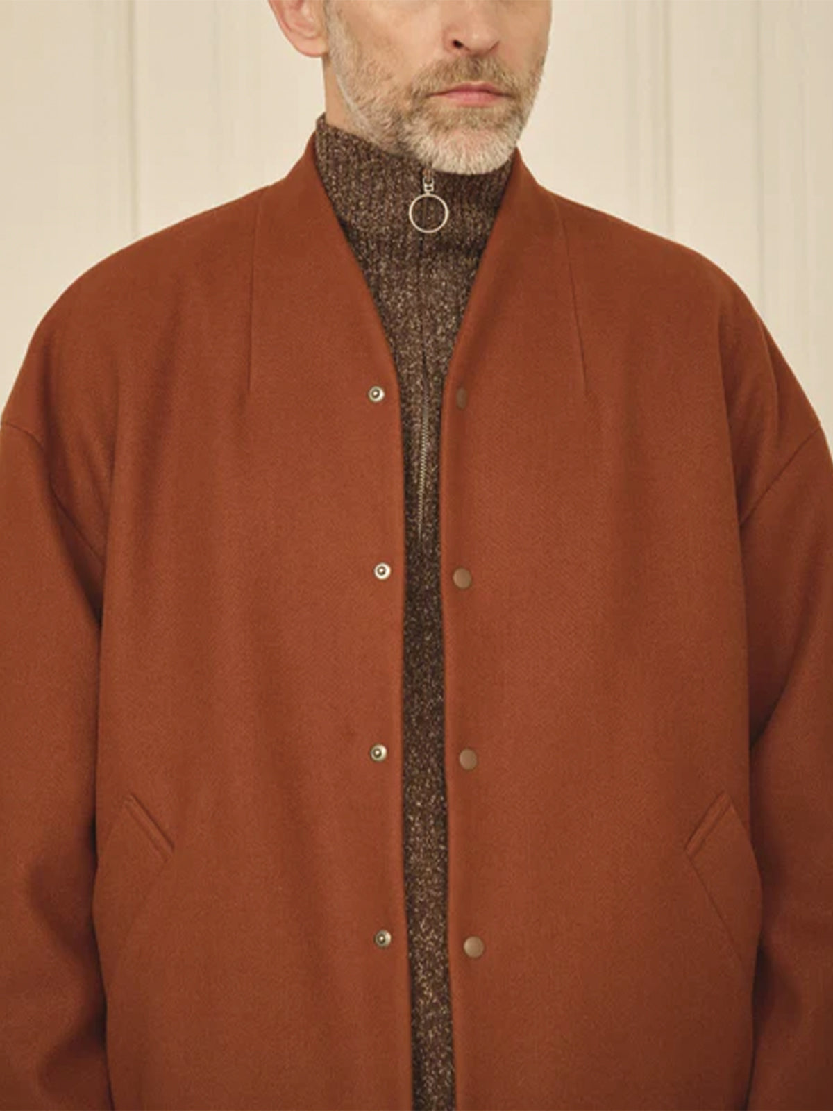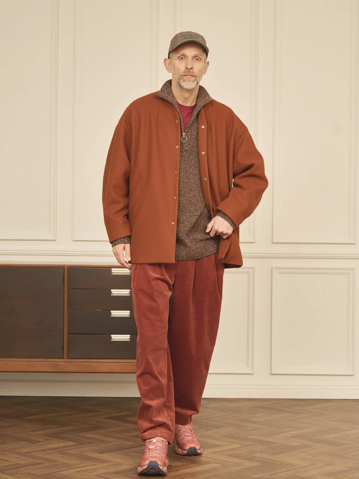 ウールライクなポリエステル素材は暖かさを持ちながら軽いのが魅力的。