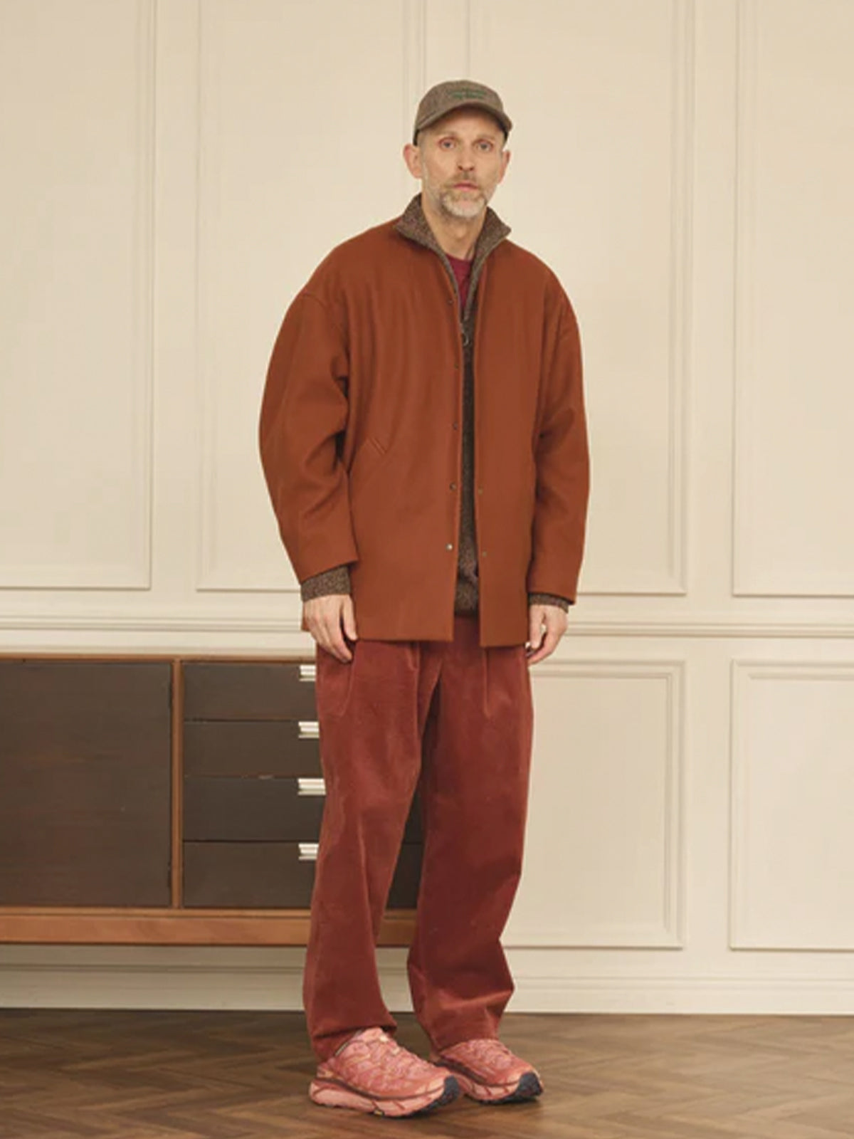 バックスタイルが膨らむシルエットをエッグシルエット”と銘打ったシグネチャーコート。