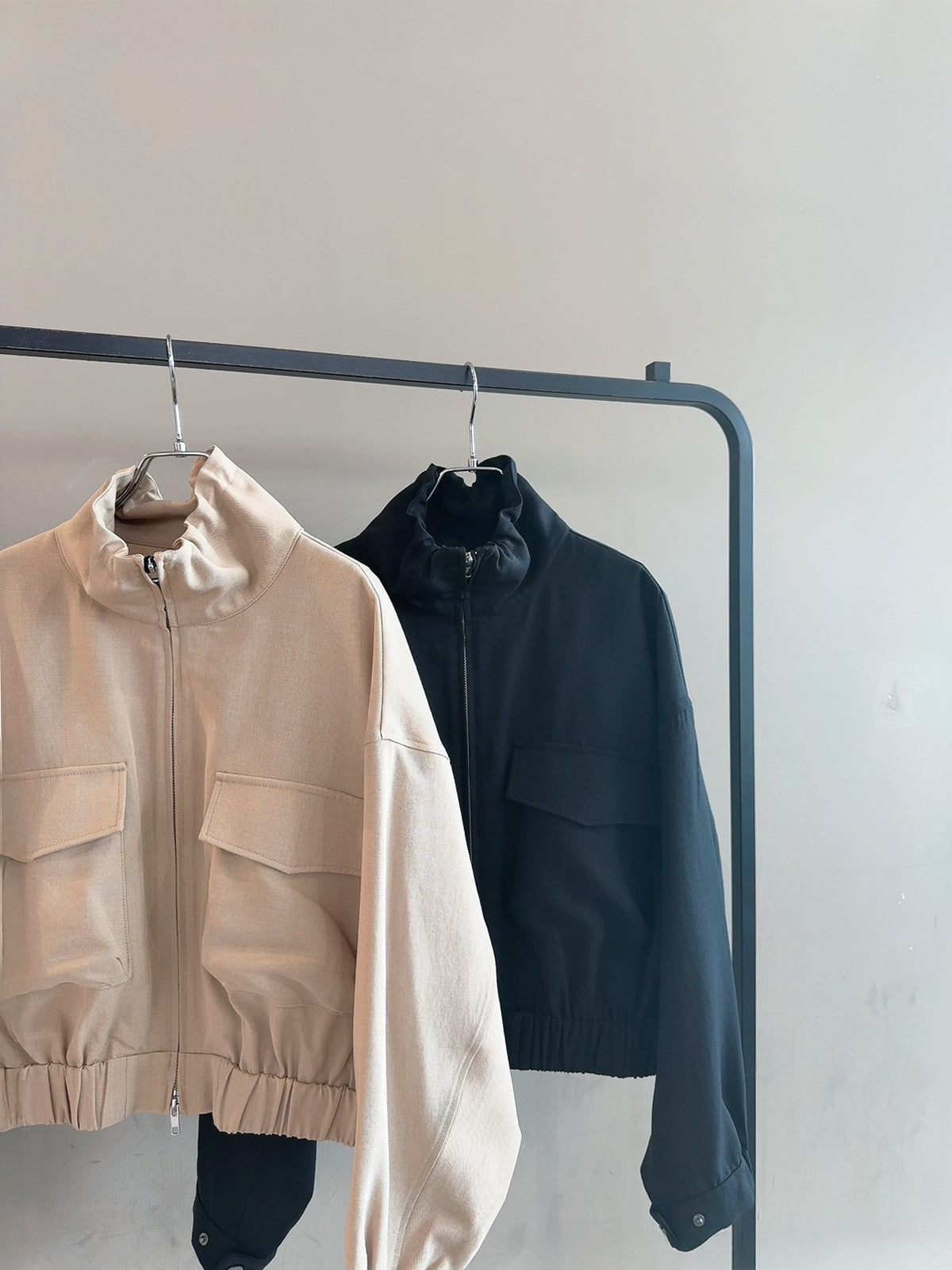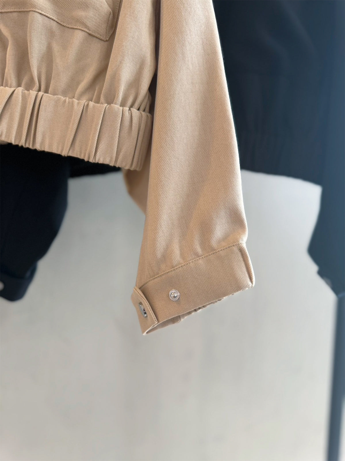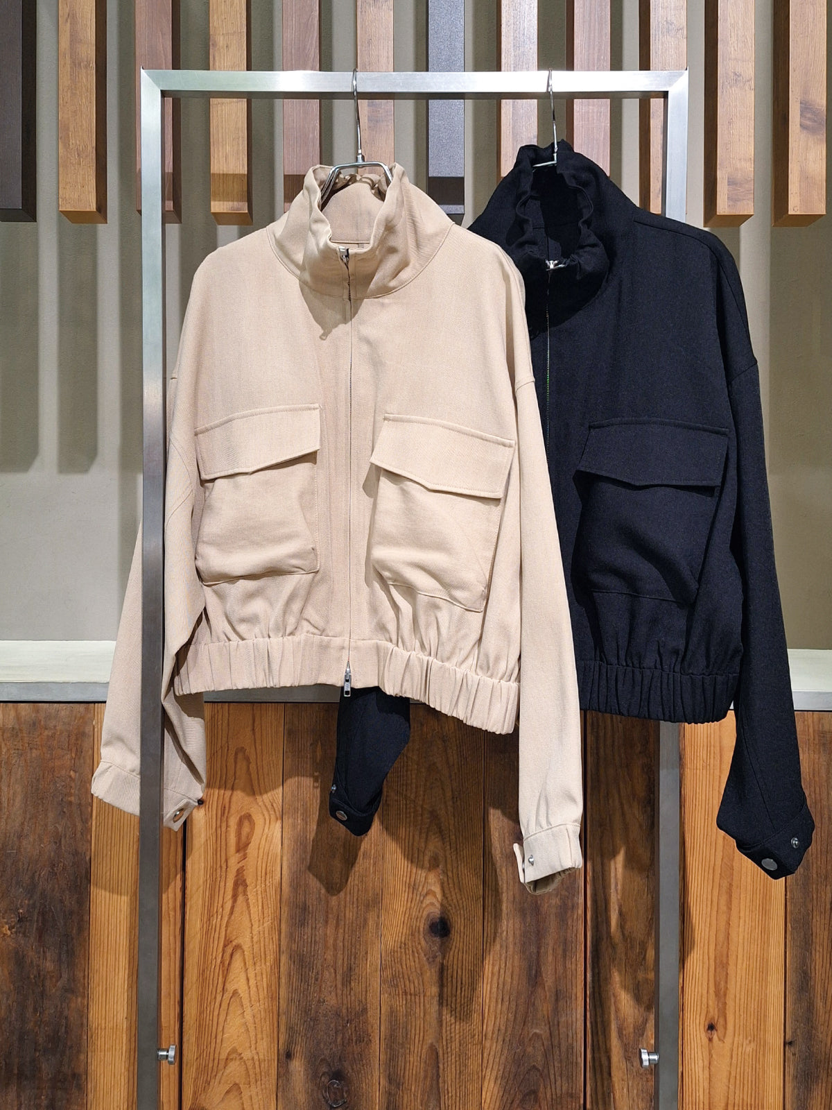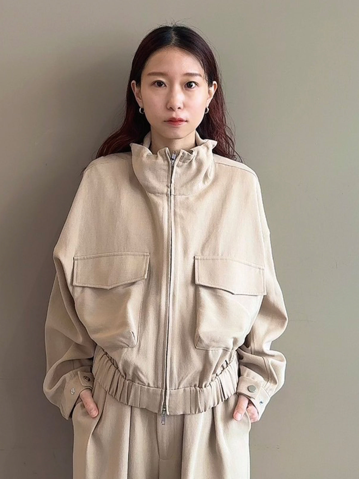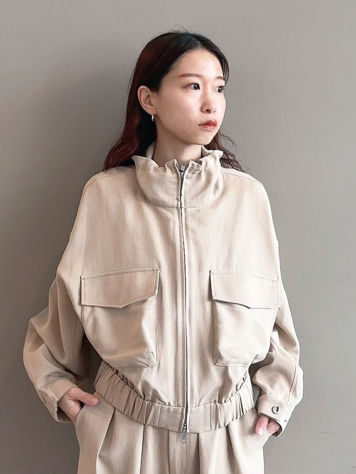 ドライタッチなツイル素材ブルゾンは、カジュアル感がありながらも今年らしいコンパクト丈に仕上げました。