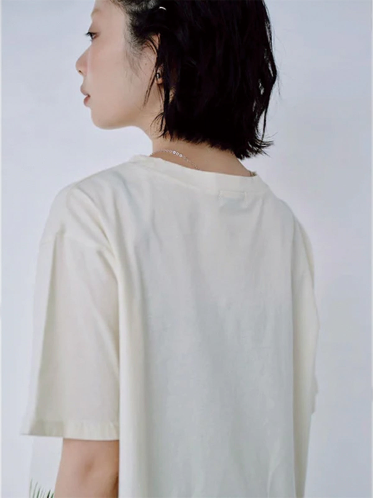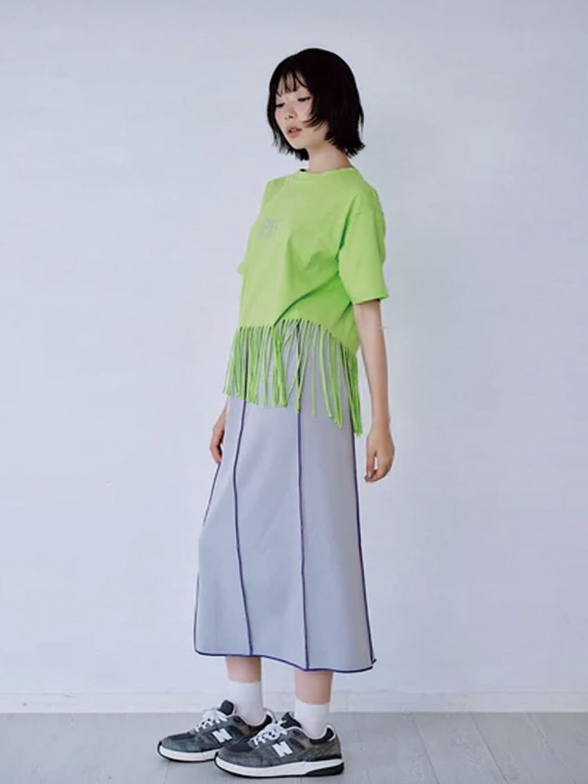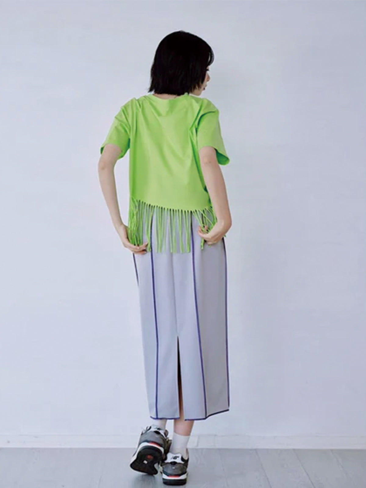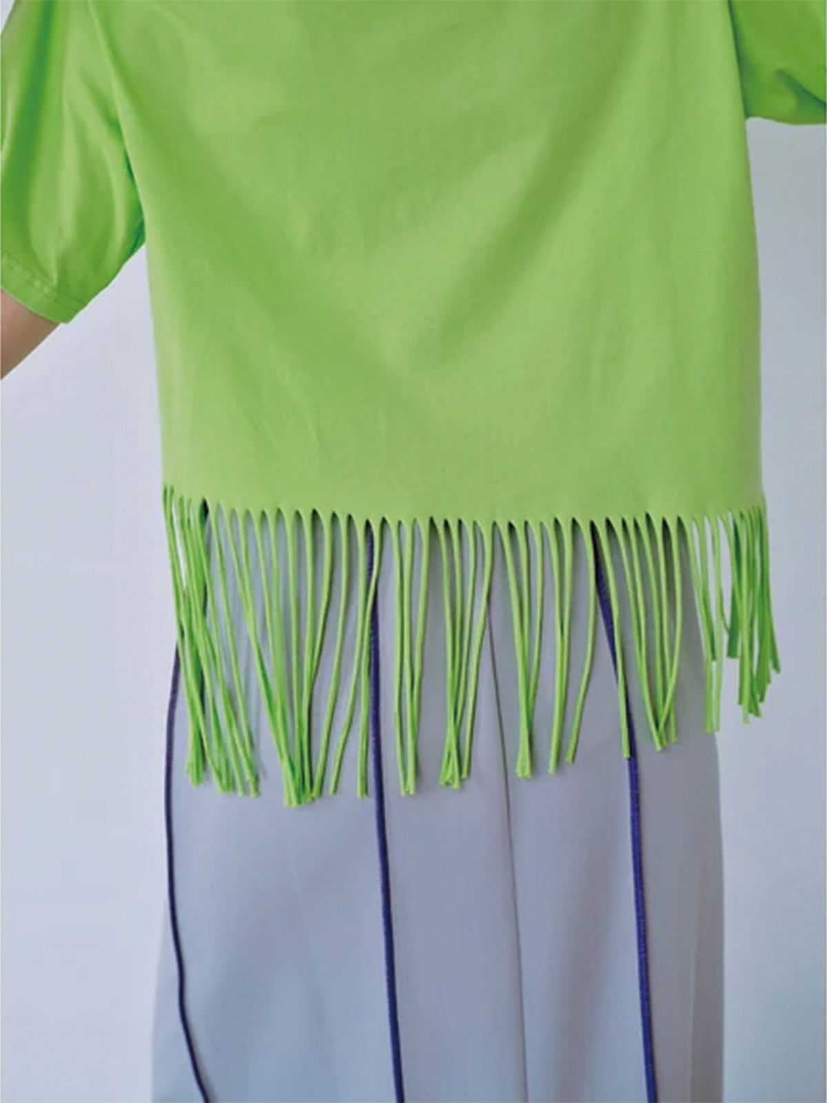 裾にフリンジを施したプリントTシャツ。