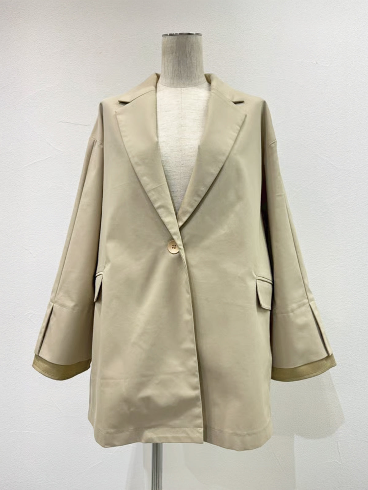 袖口にレイヤードデザインを施した、ツイルジャケット。
