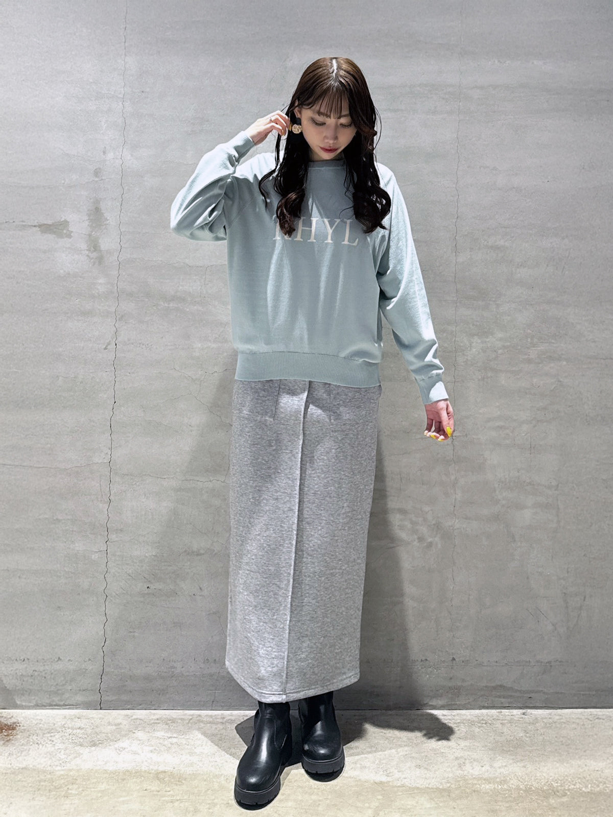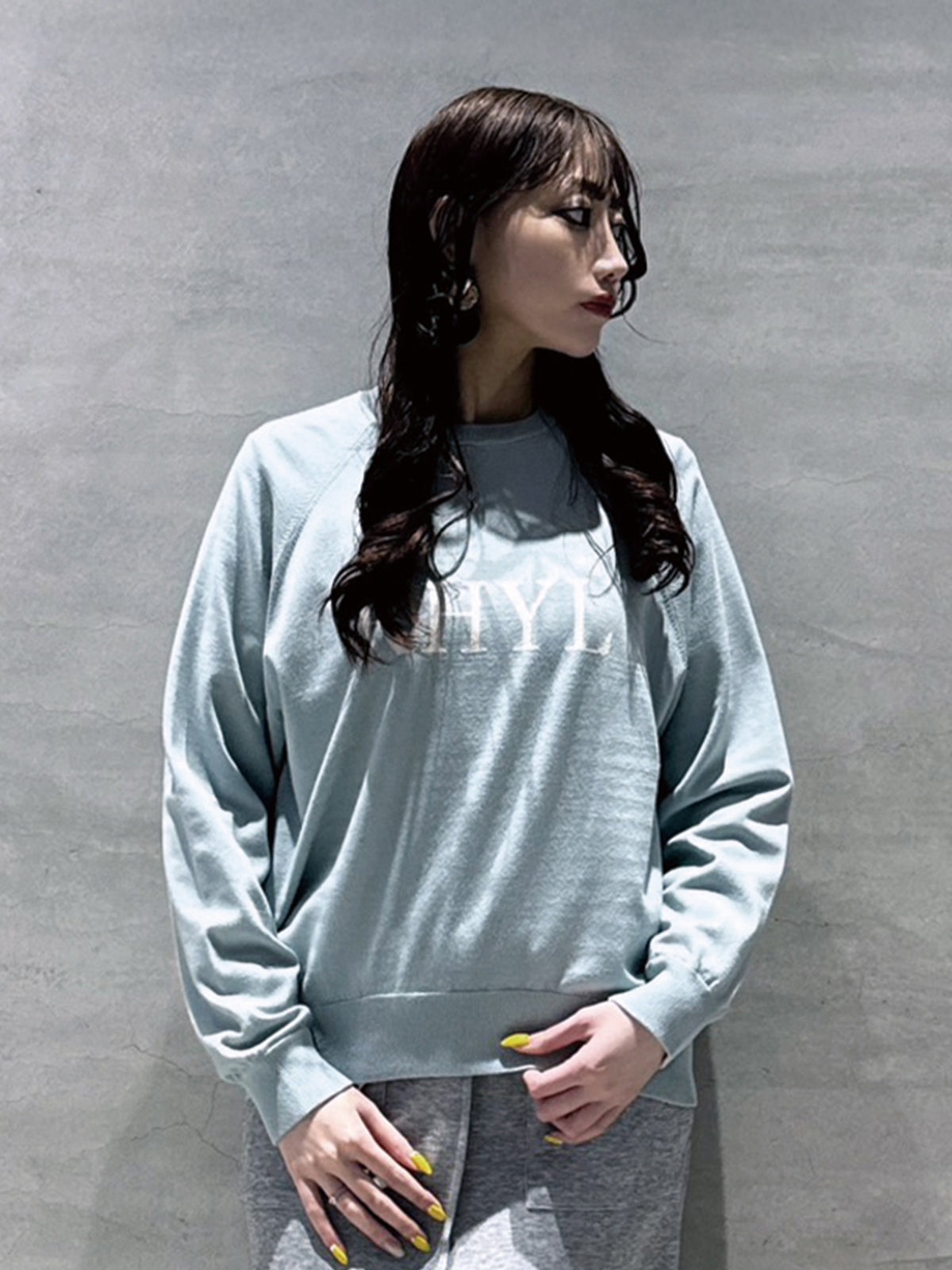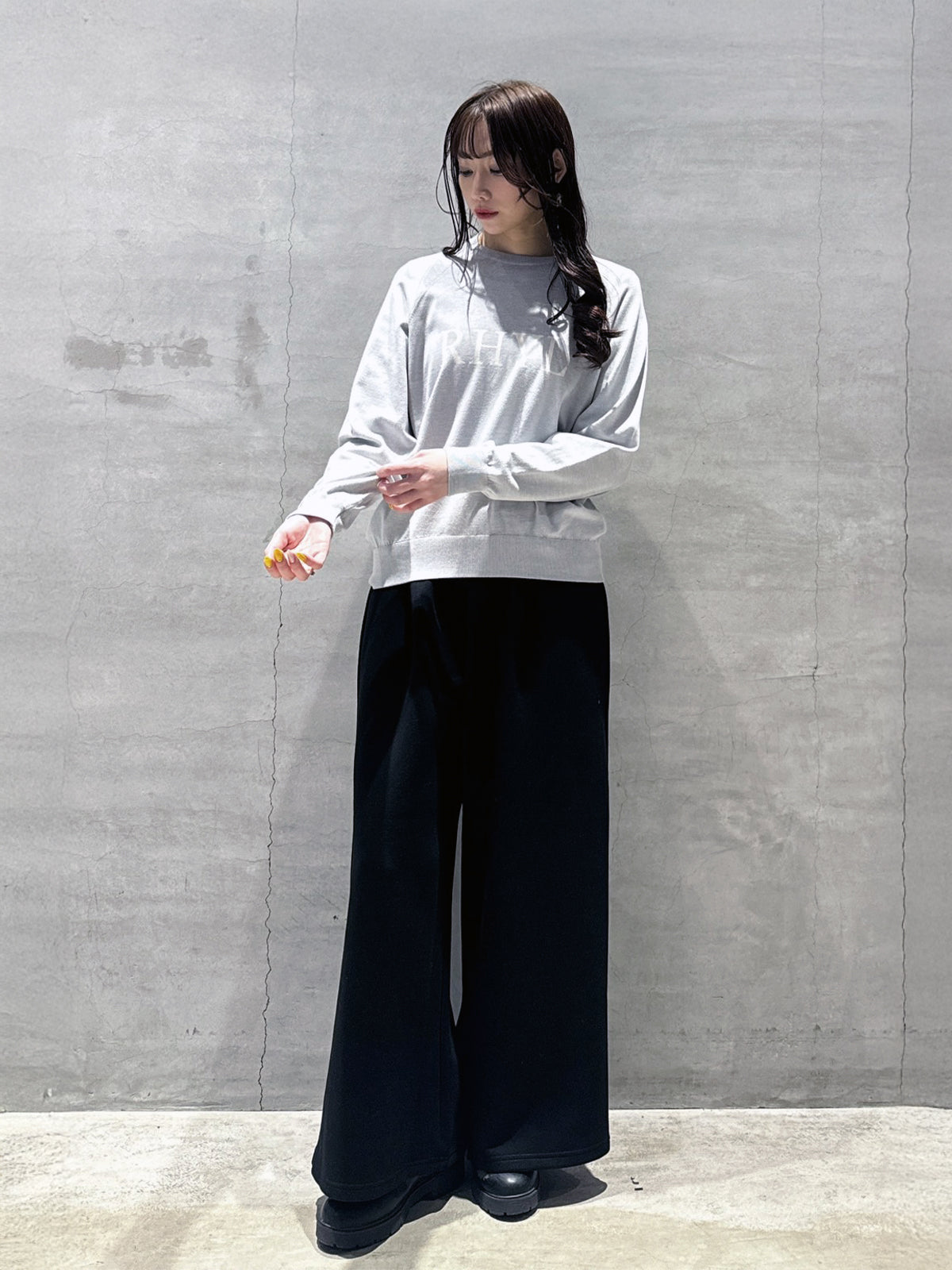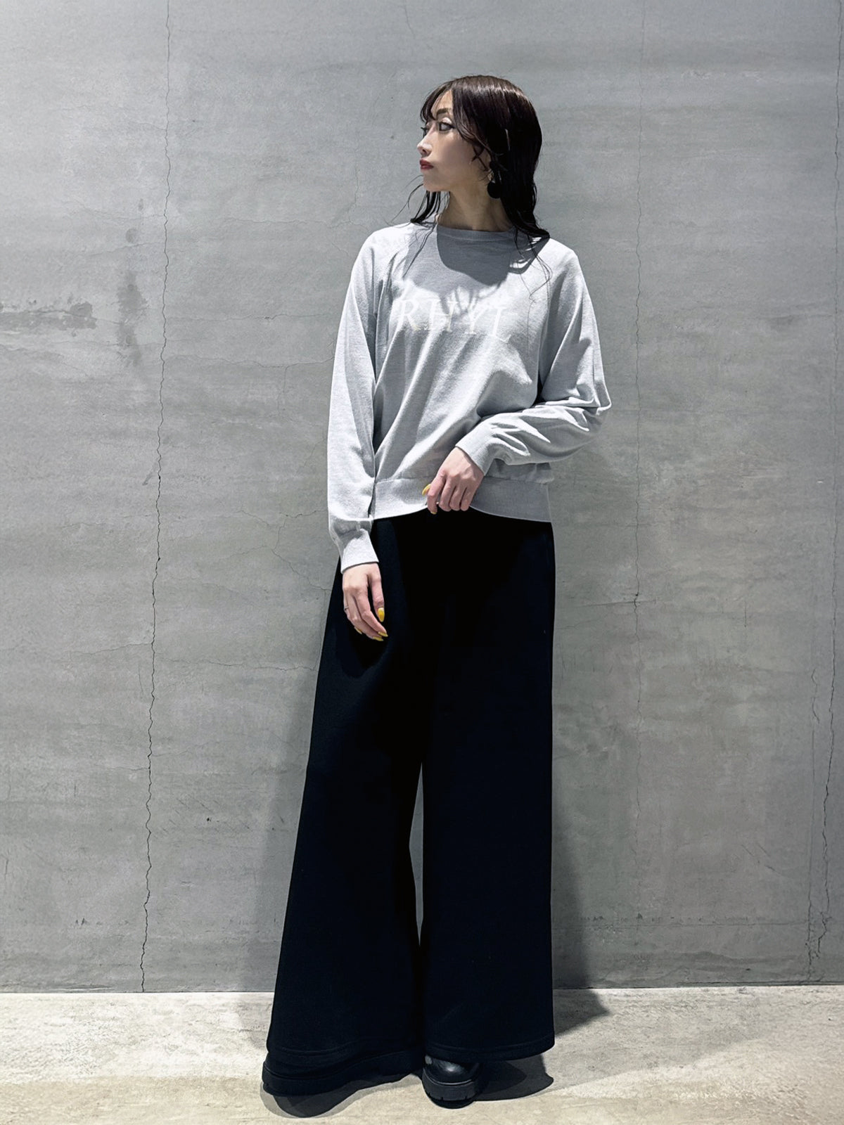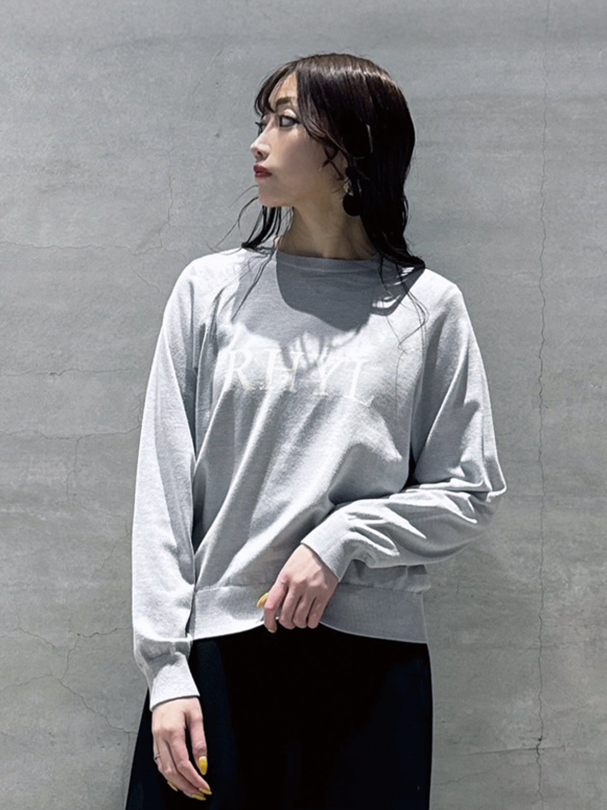 定番人気のラグラン袖のロゴニットトップス。