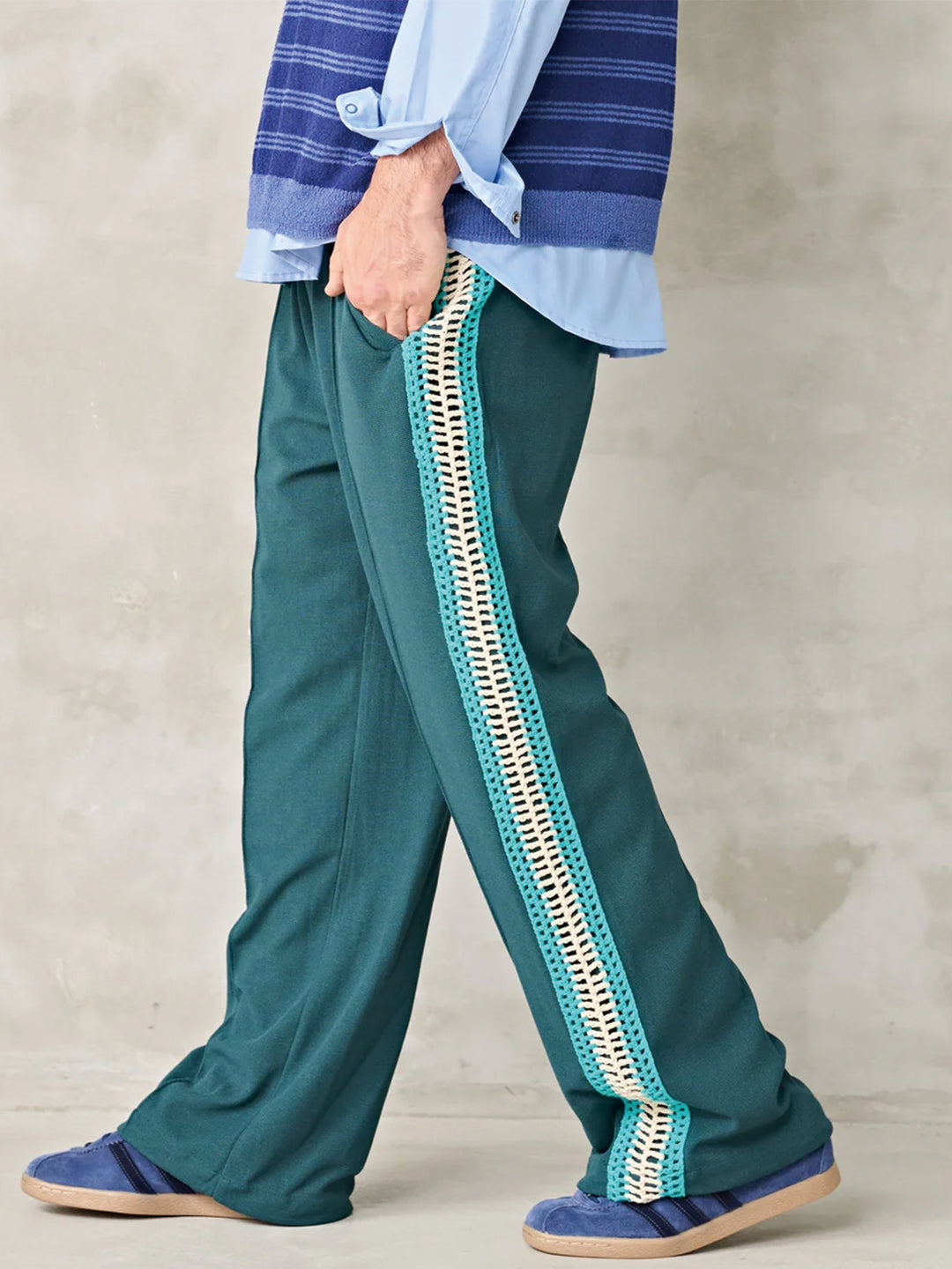 ボックス形のデザインはスリット位置を自由に調整でき、その日のコーディネートに合わせて楽しめます。二段のベルト通しで好みのベルトを合わせてアクセントをプラスすることも。膝が出にくい接結編みで安心して着用できます。