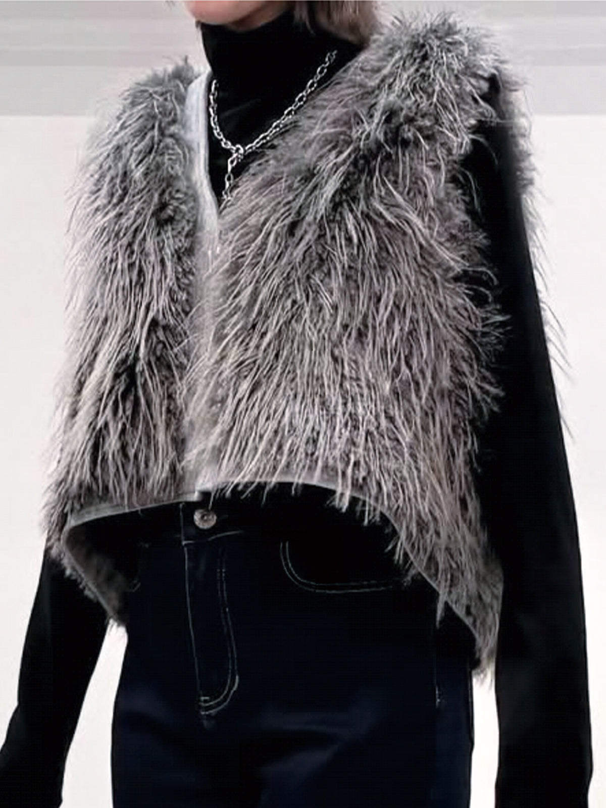 異なる長さのファーを組み合わせた独特の質感が特徴です。