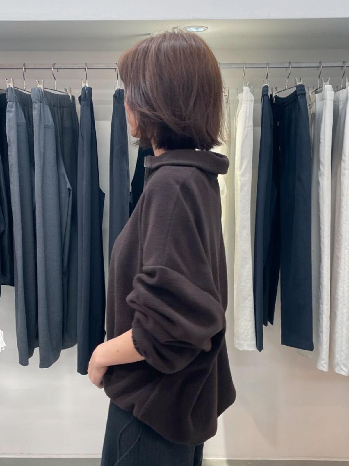 ハーフジップデザインのフリーストップス。 裾脇にあるドロストで裾を絞ったり、フロントのファスナーを開けたりと、着用の変化も楽しめます。