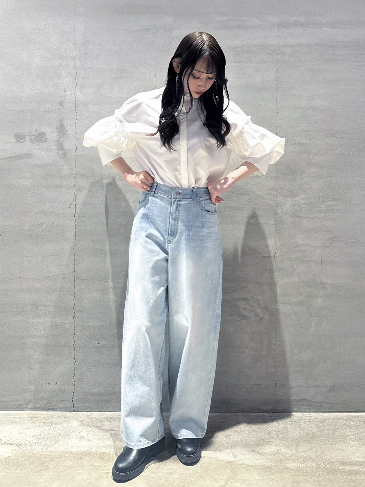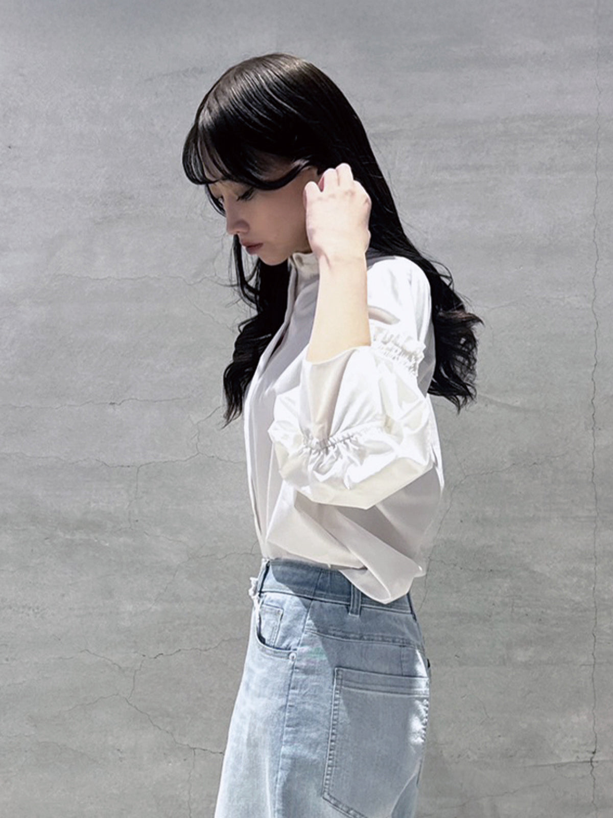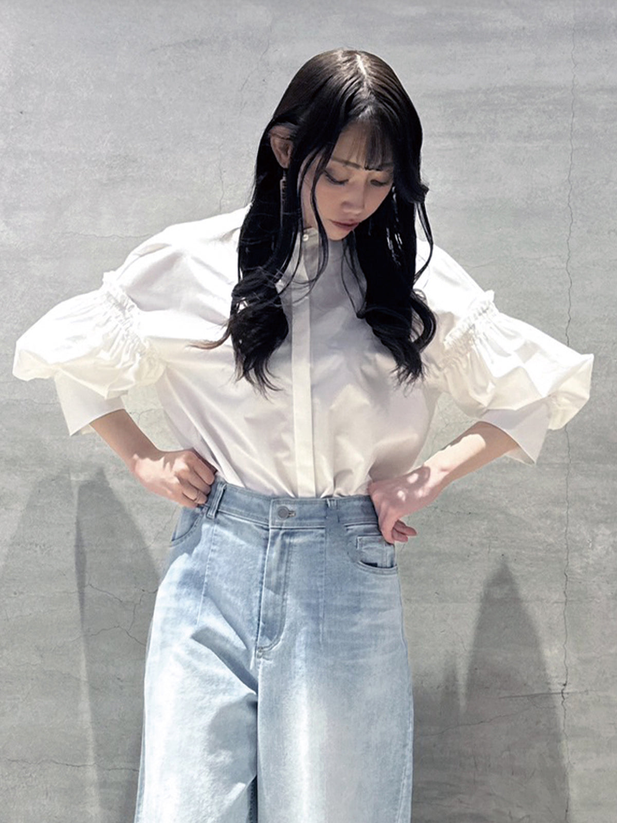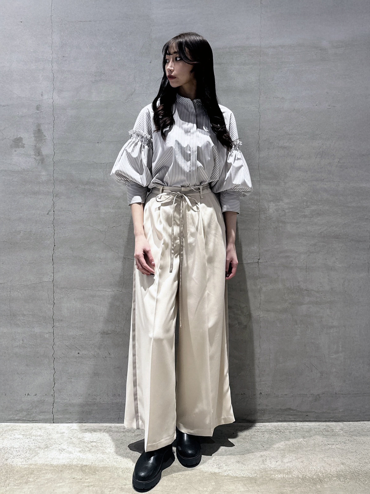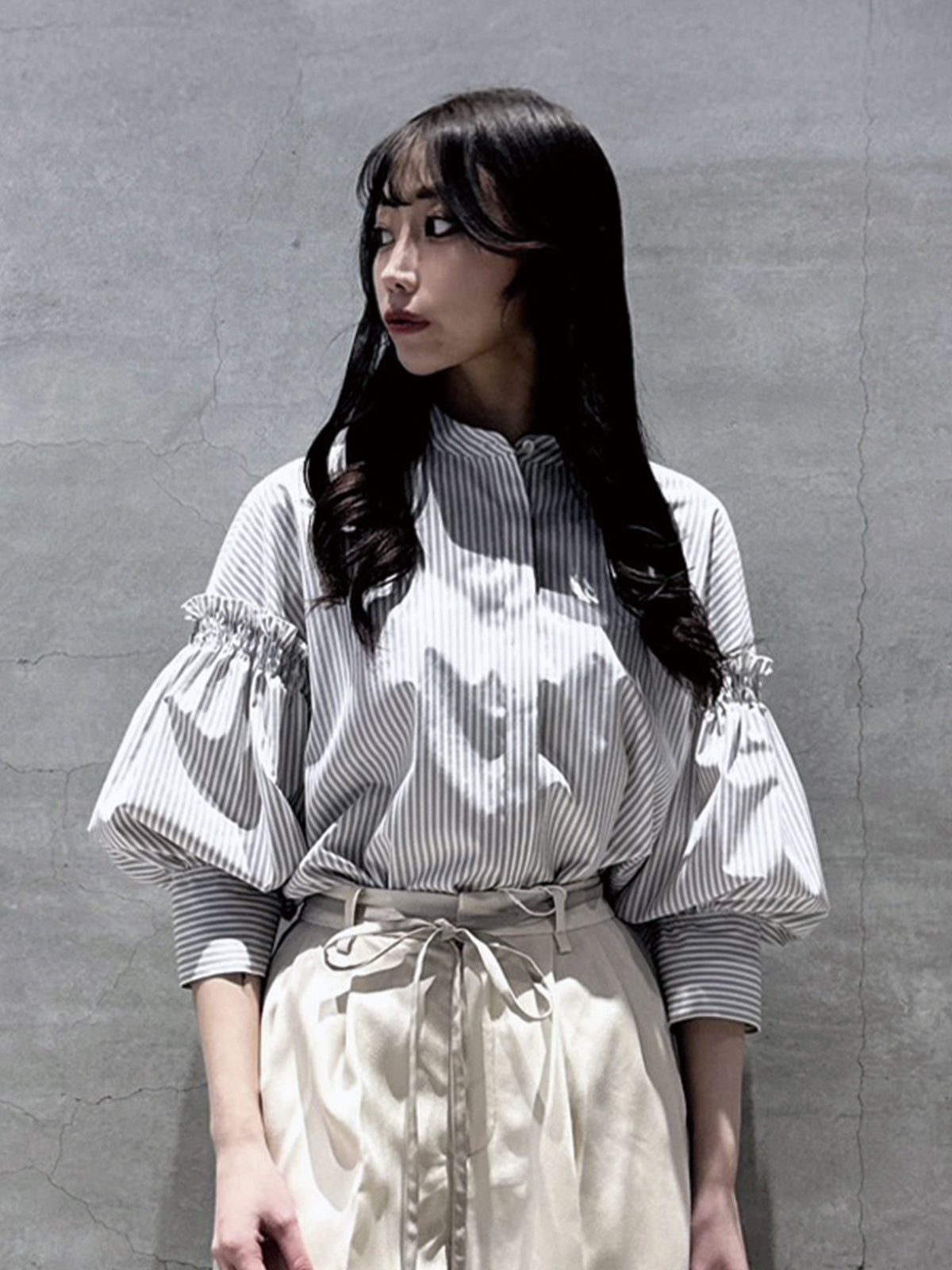 バルーン袖ストライブシャツ