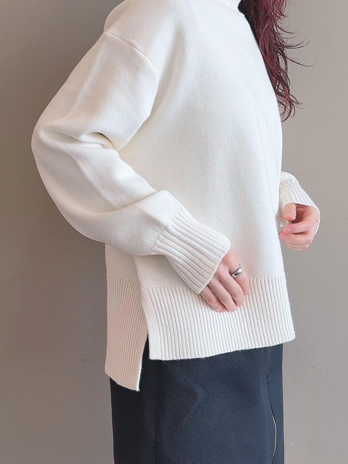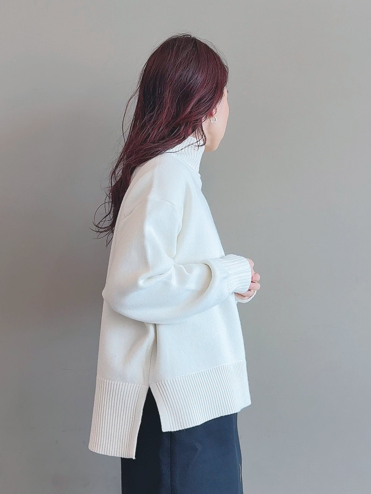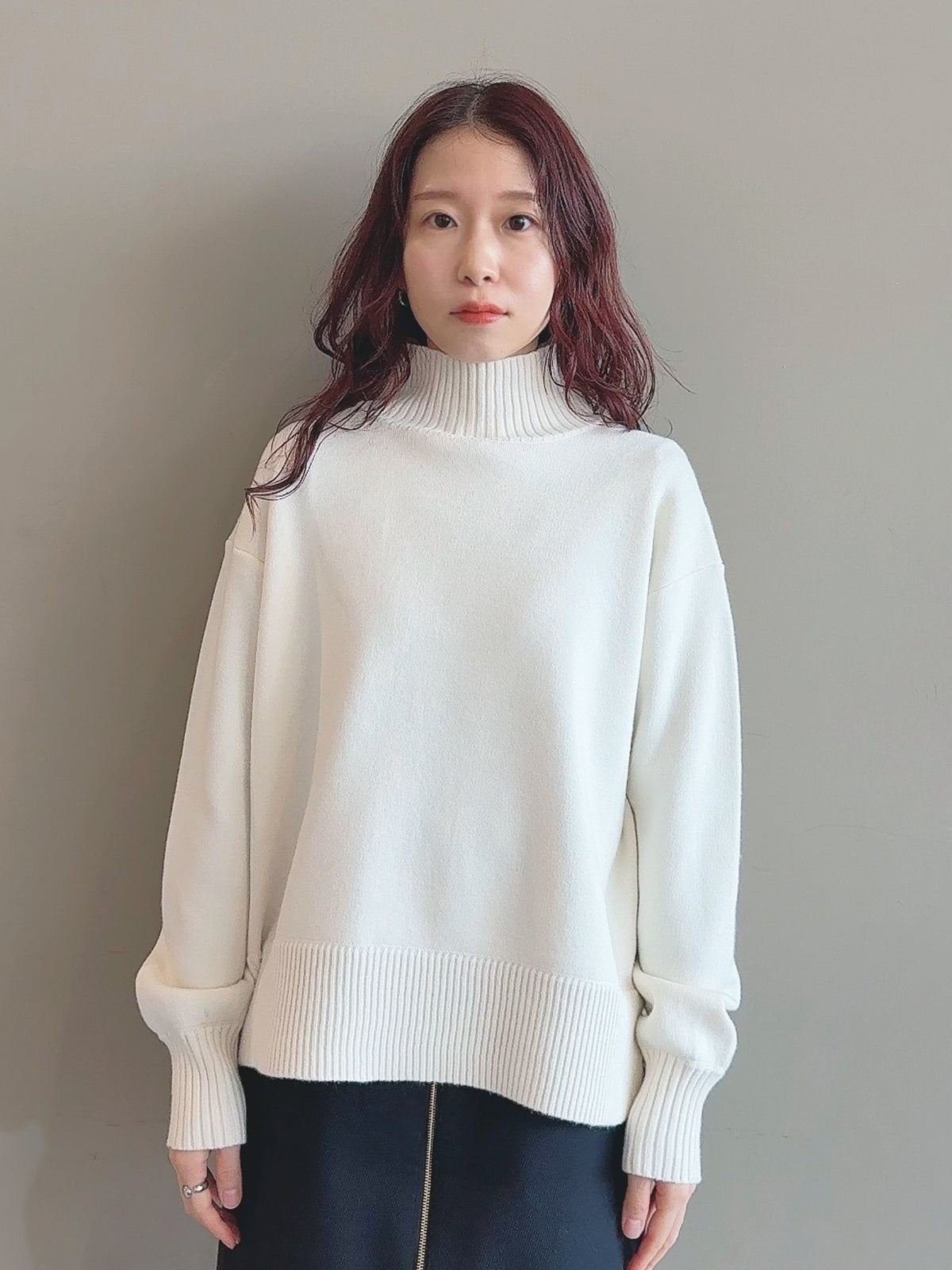 定番人気のゆったりシルエットのタートルニットトップス。