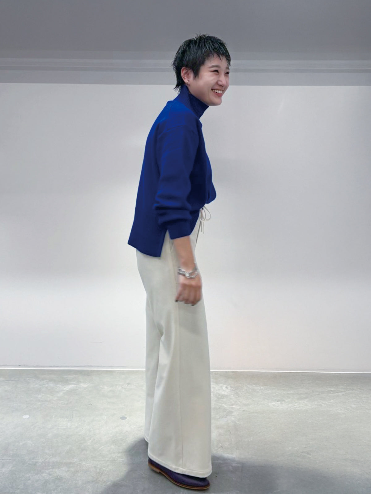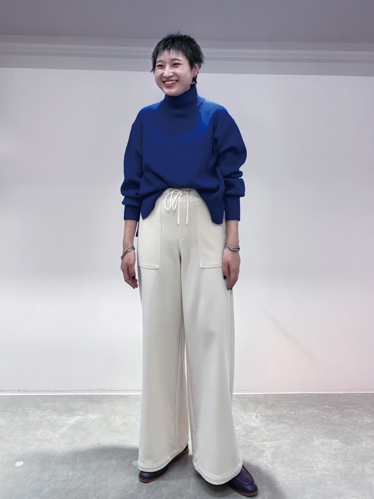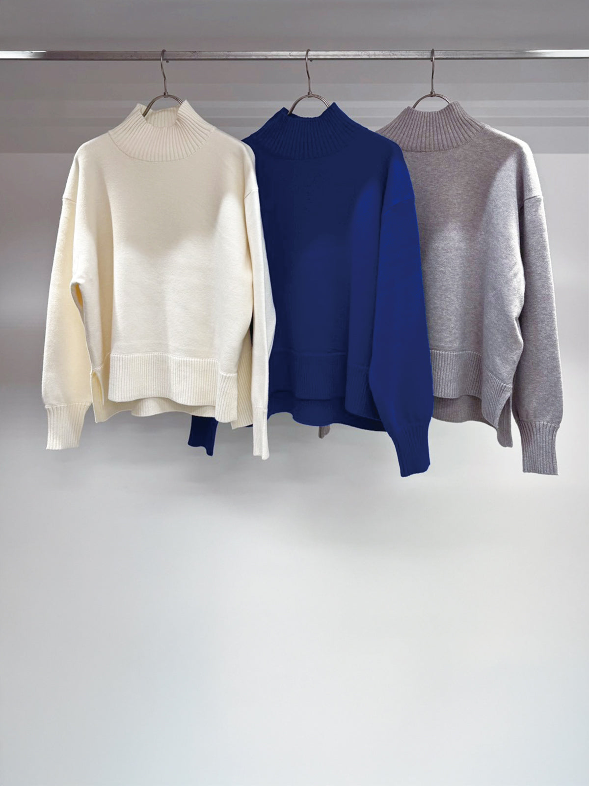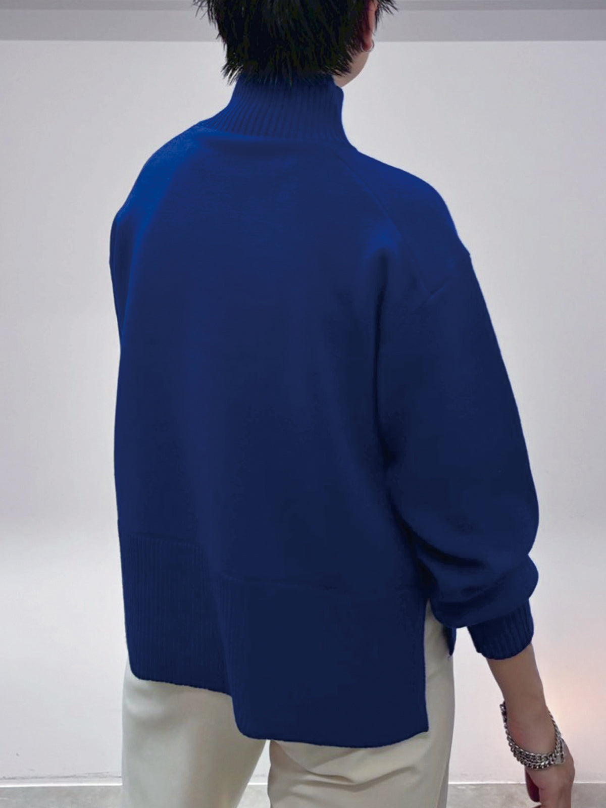 定番人気のゆったりシルエットのタートルニットトップス。