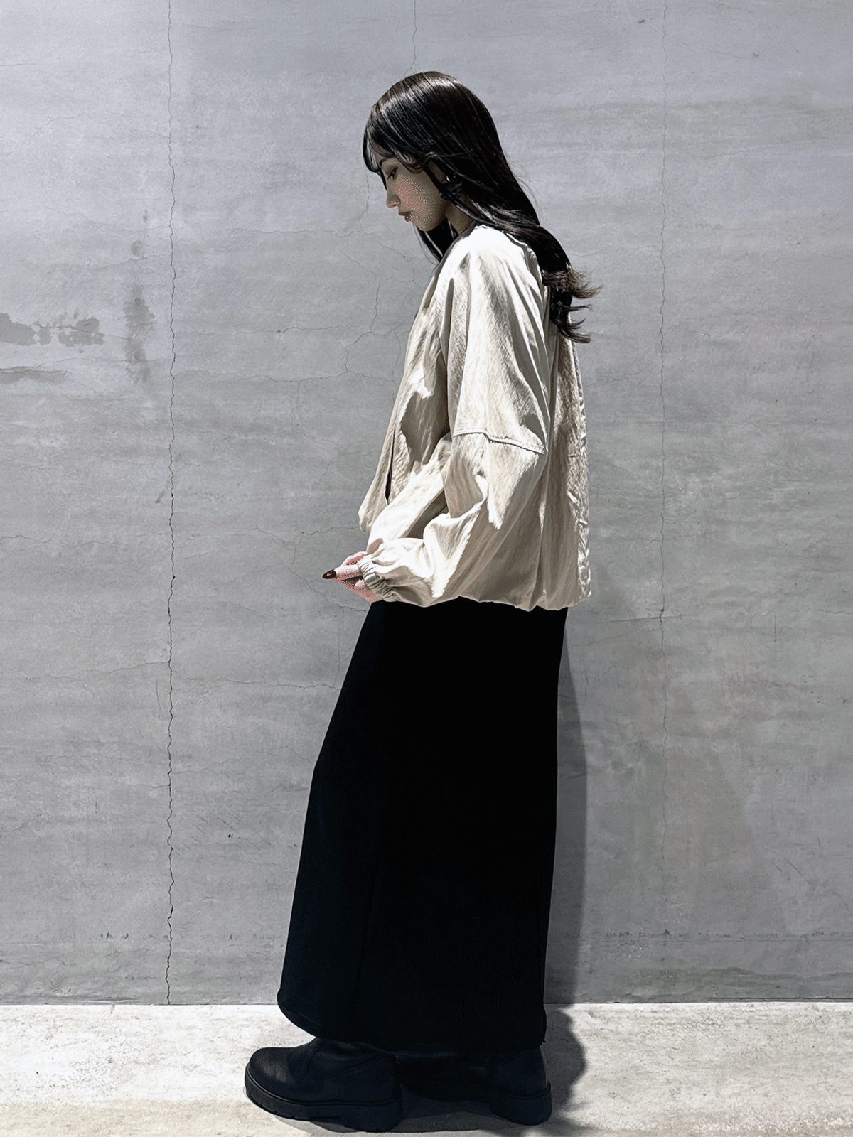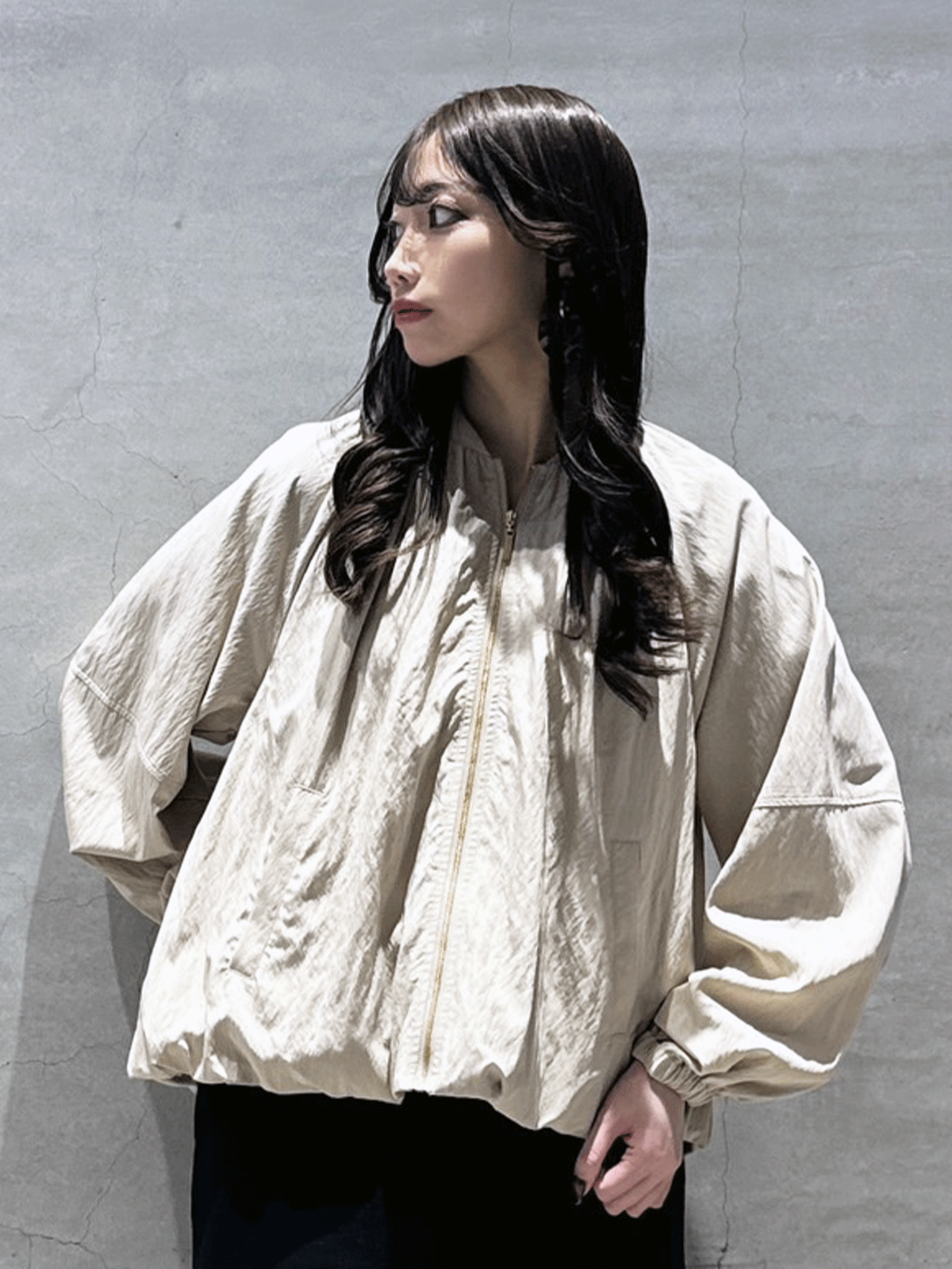 丸みのあるシルエットで女性らしさをプラスしたMA-1ライクなブルゾン。