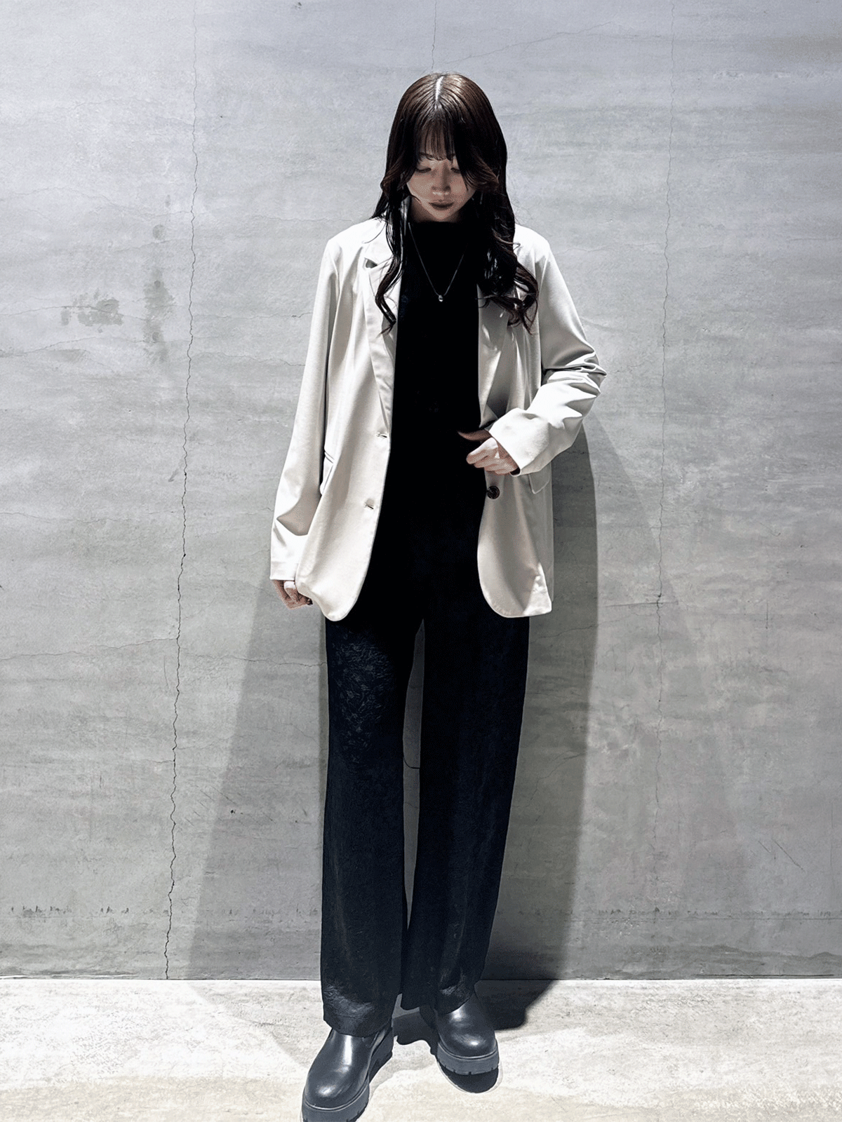 シルエットはセミワイドストレートラインですっきりと仕上げました。