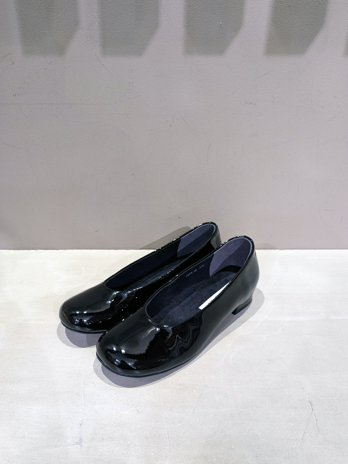丸みを帯びたつま先と深いU字カットが特徴のパンプス。