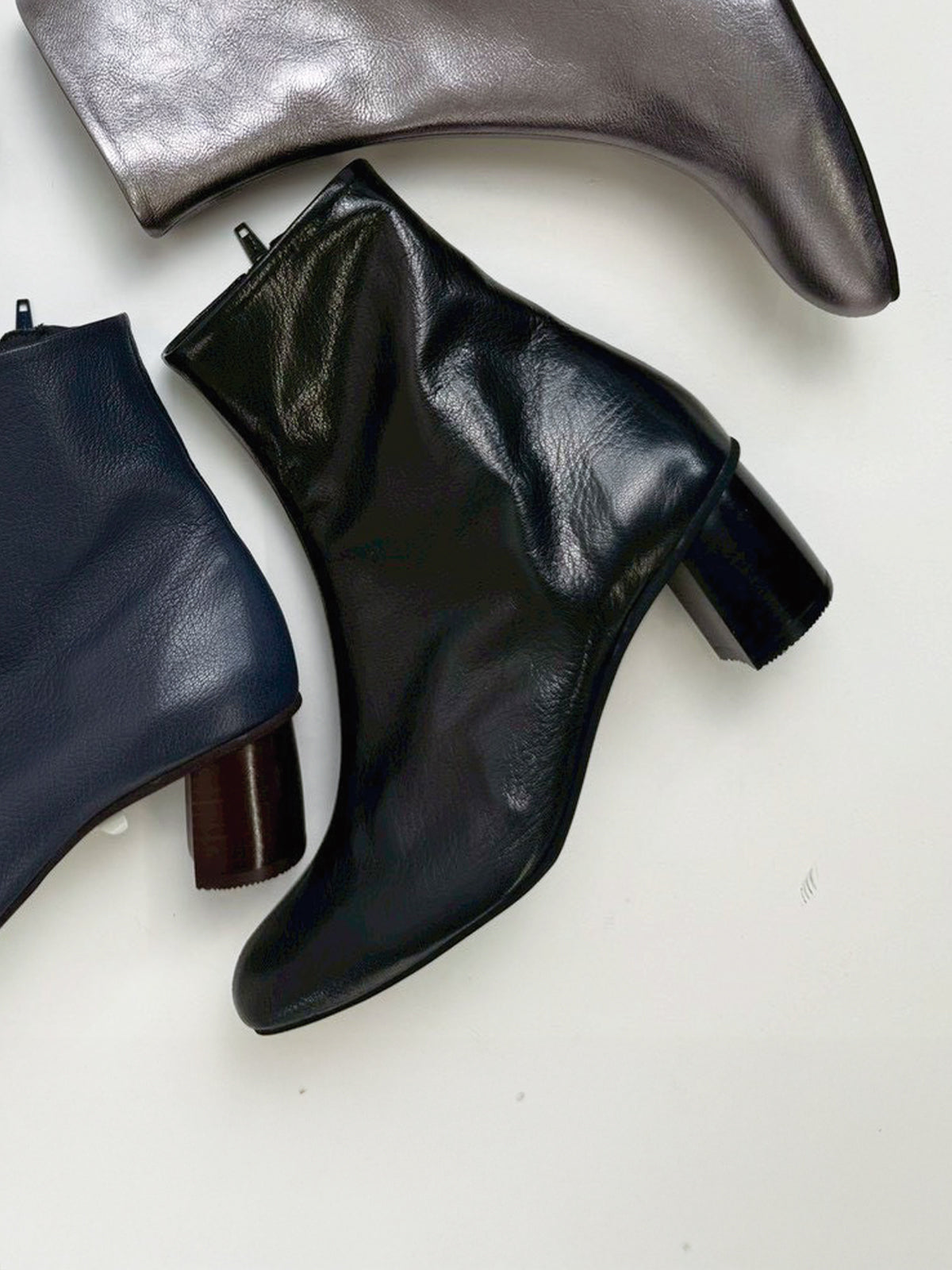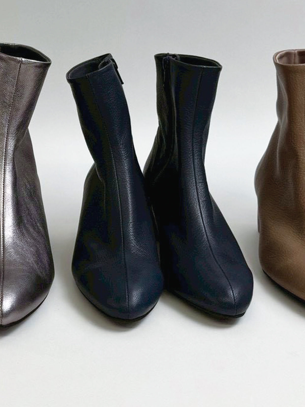 スタイルアップと安定感を兼ね備えた絶妙な高さで、つま先の程よい丸みがパンツにもスカートにも自然に馴染みます。
