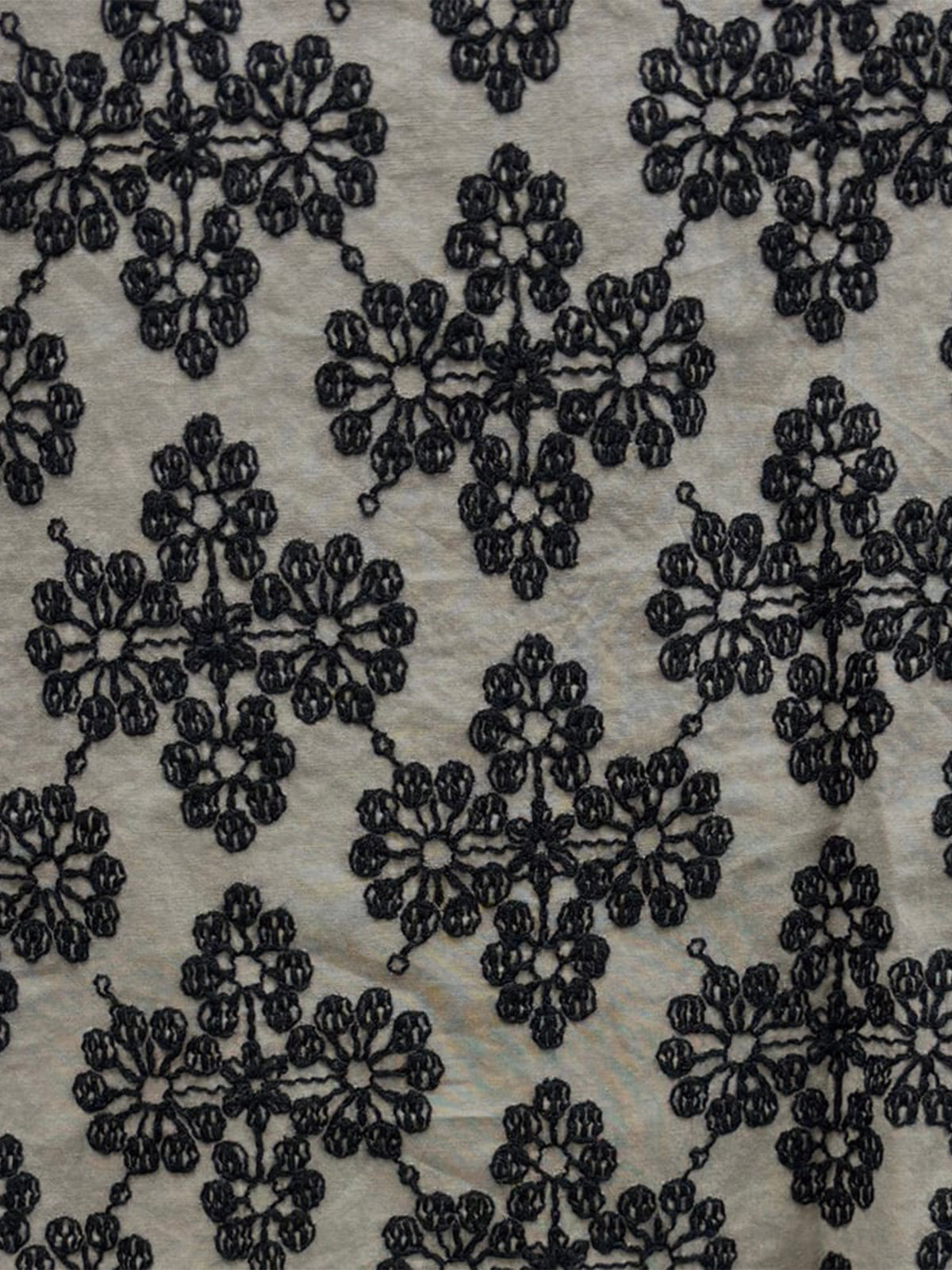 コットンのローン生地に立体的な刺繍を施したボトムス。