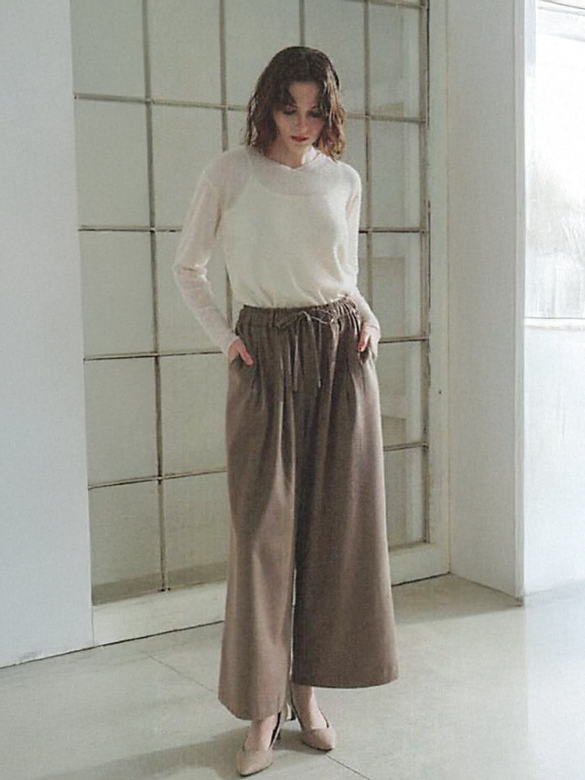 ウールブレンドインプリ2タックワイドパンツ