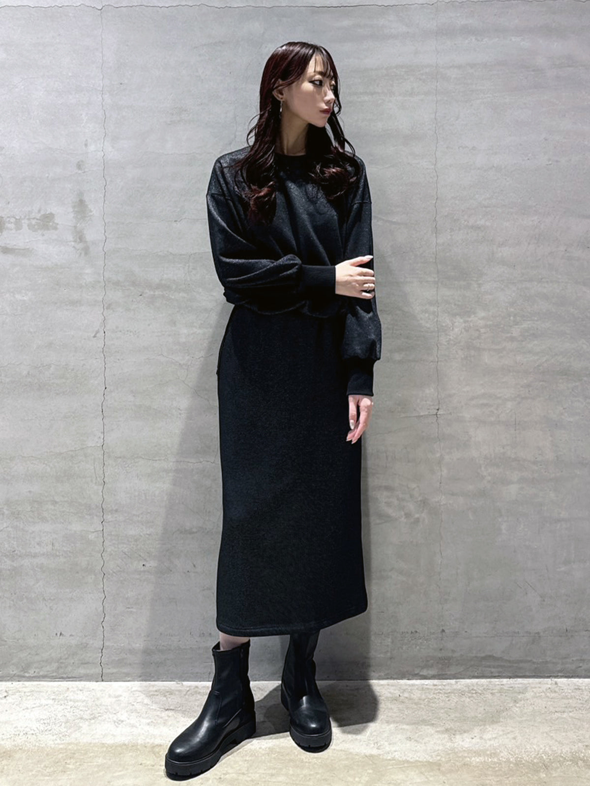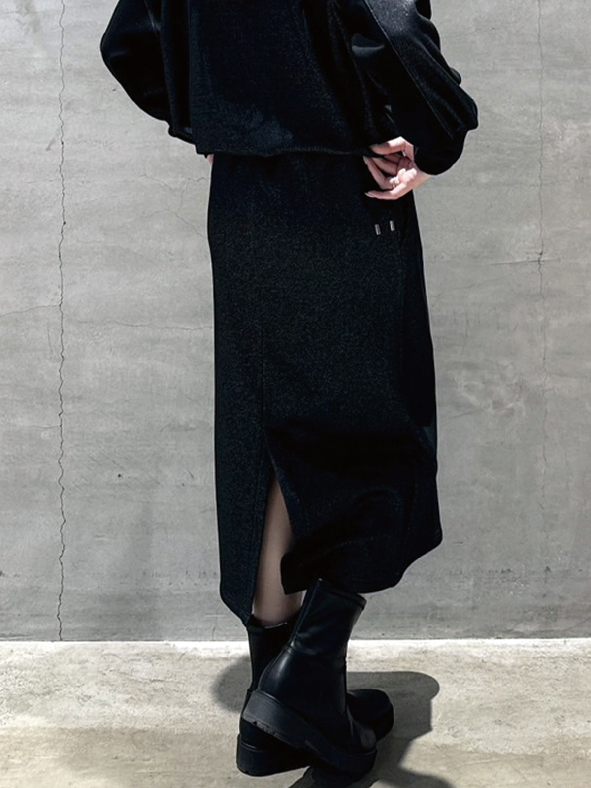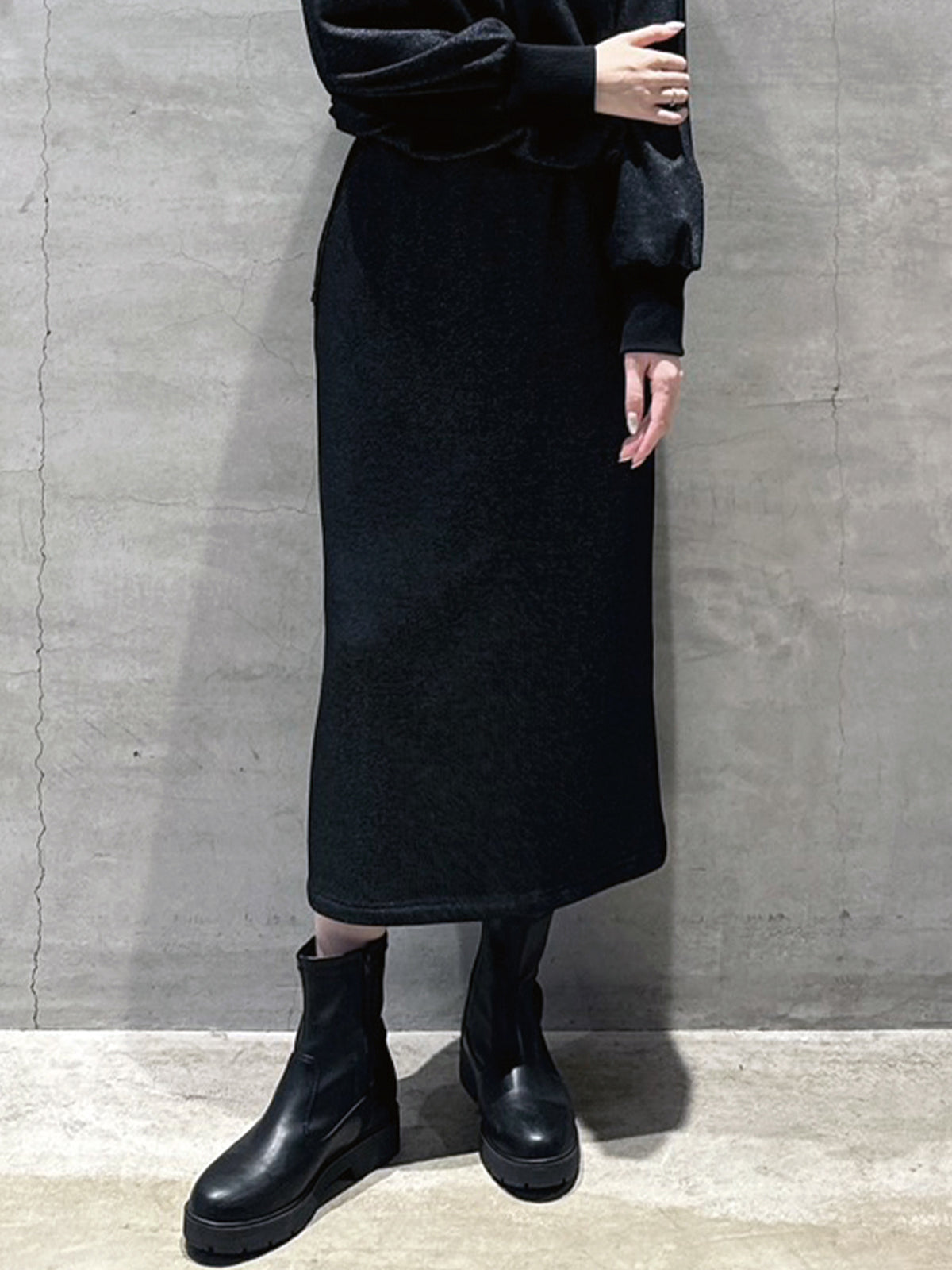 柔らかな裏起毛ボンバーヒート素材で、まるで毛布に包まれているような心地よさのラメボンバータイトスカート。