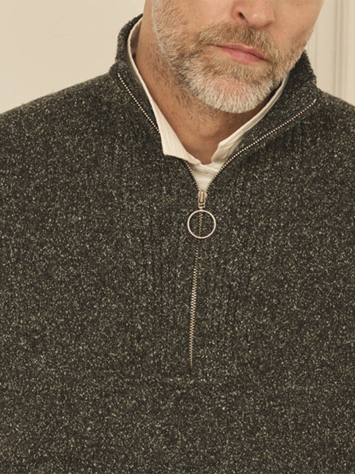 ZIPの引き手はリングタイプを採用し、首元のアクセントに。