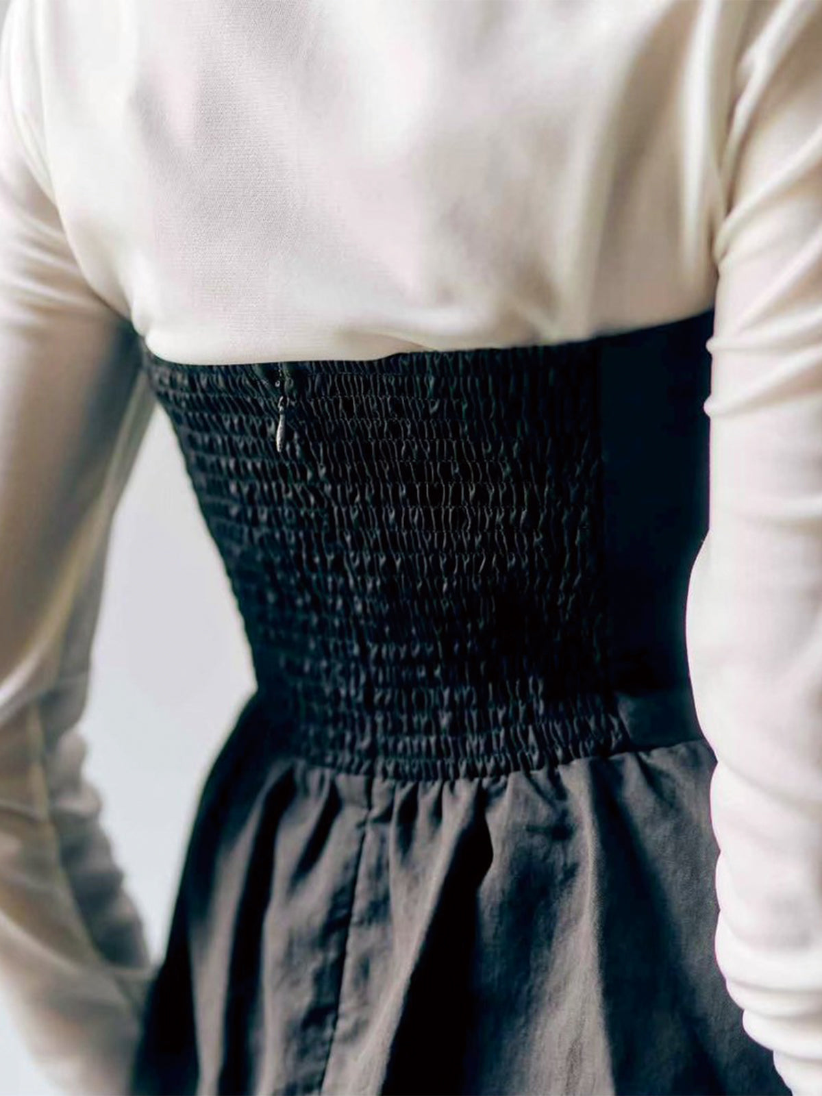 ナイロン混素材は肌触りが滑らかで軽やかな着心地。後ろは幅広ギャザーで伸縮性に優れ、ずり落ちの心配なくストレスフリーに着用できます。