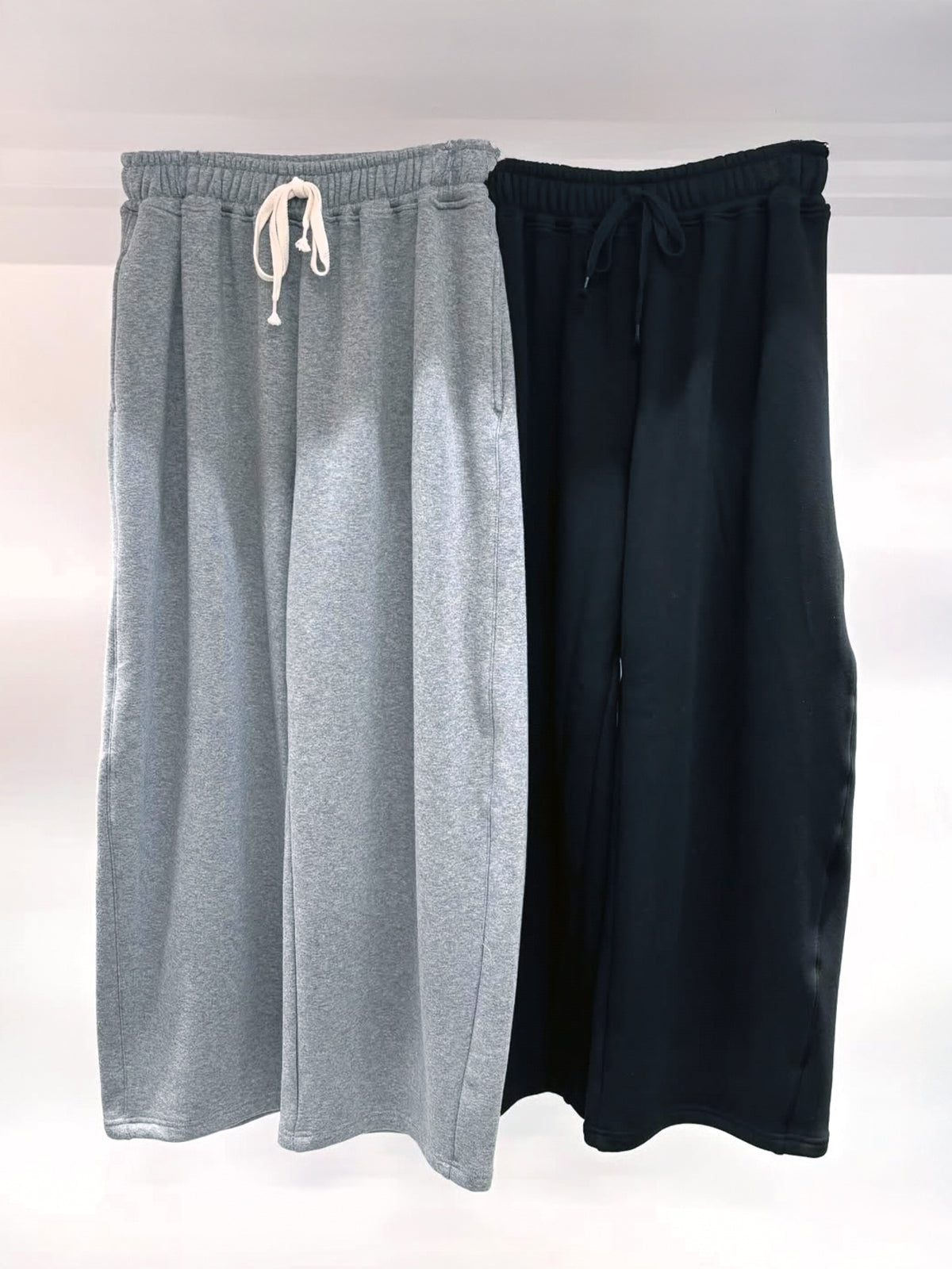 裏起毛生地を使用したカーブシルエットのイージーパンツ。