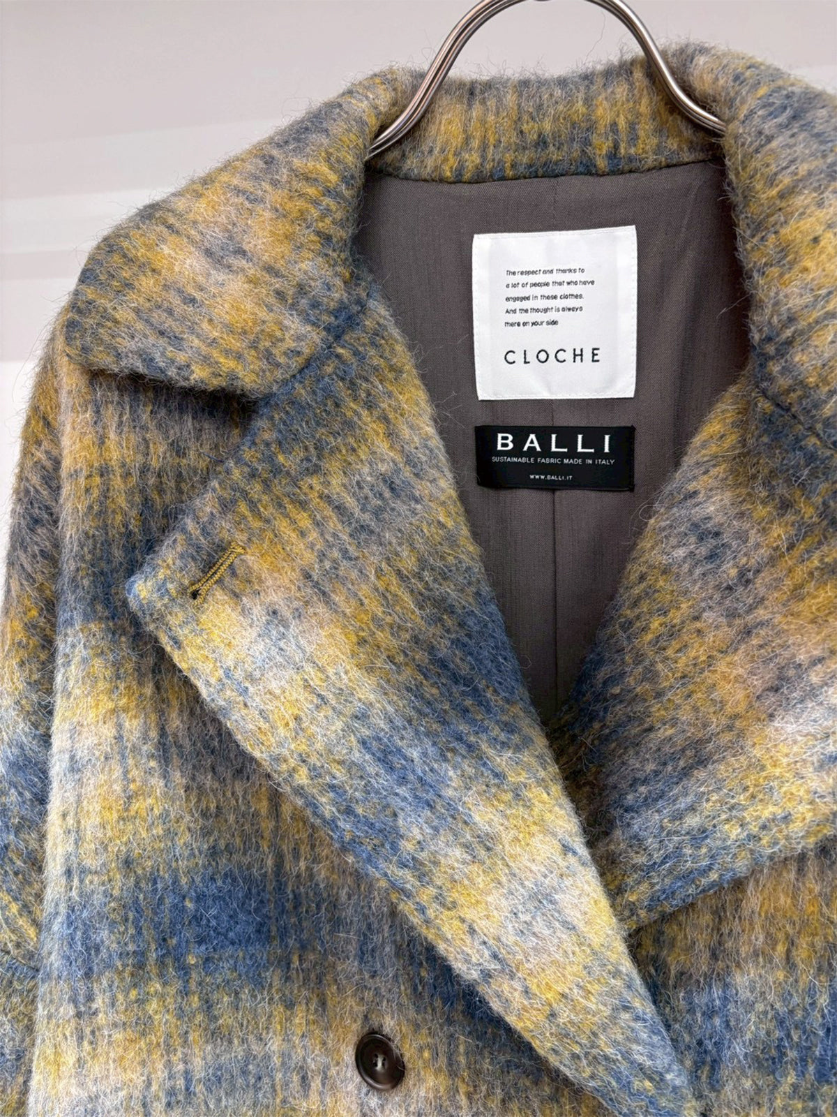 大きいチェックとカラーリングが目を引くイタリアBALLI社の生地を使用。
