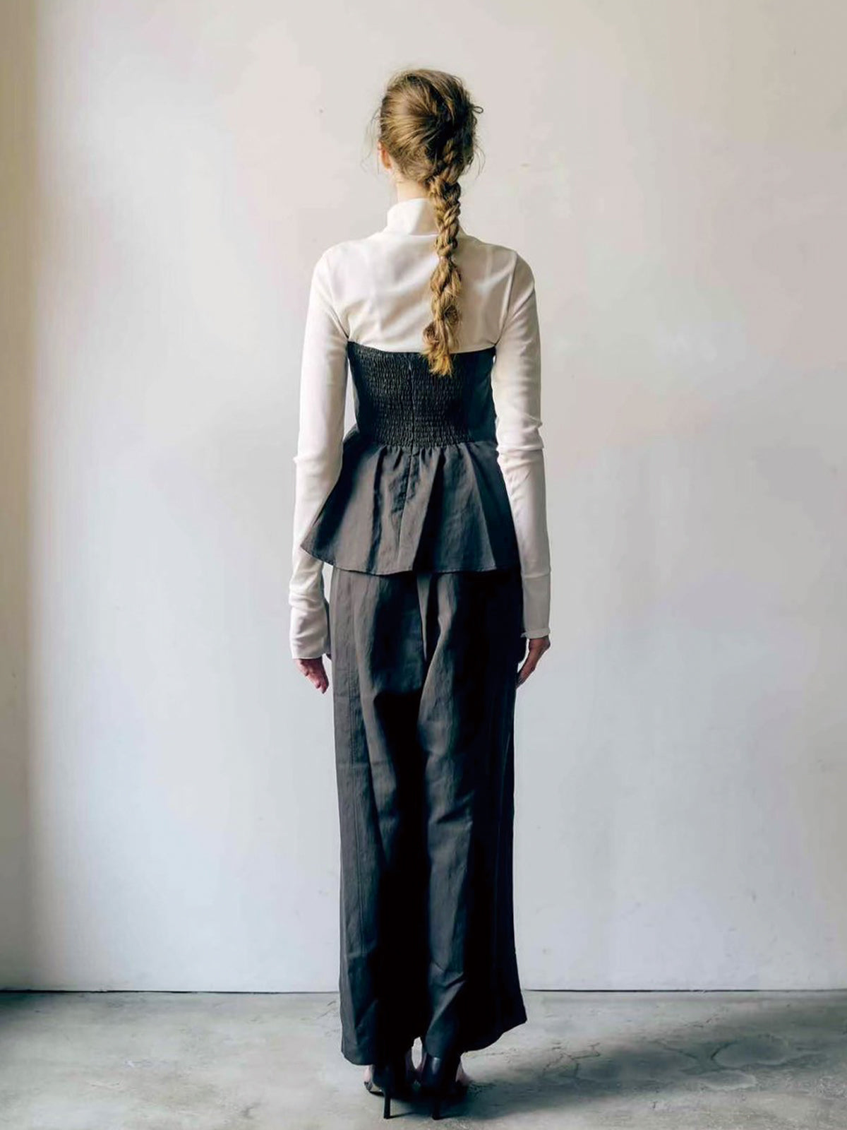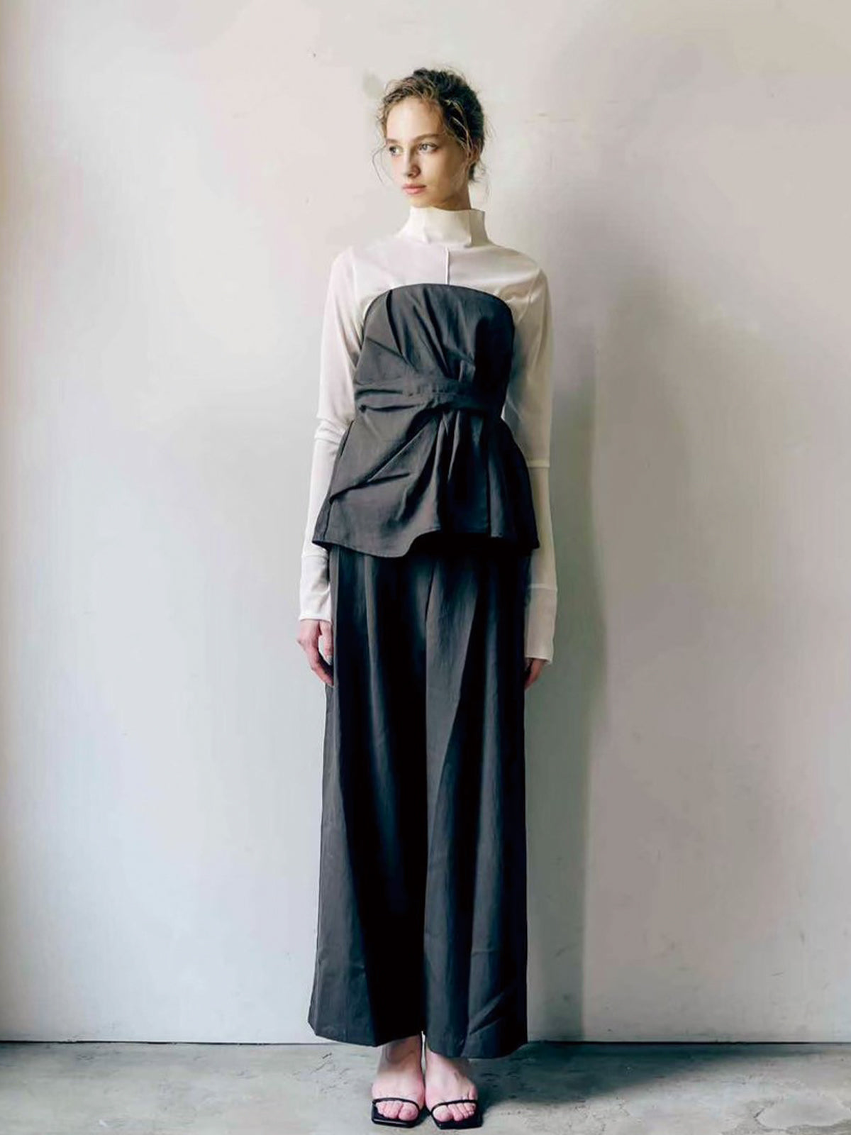 同素材のアシメタックビスチェ(a69008)とのセットアップでのコーディネートも可能です。