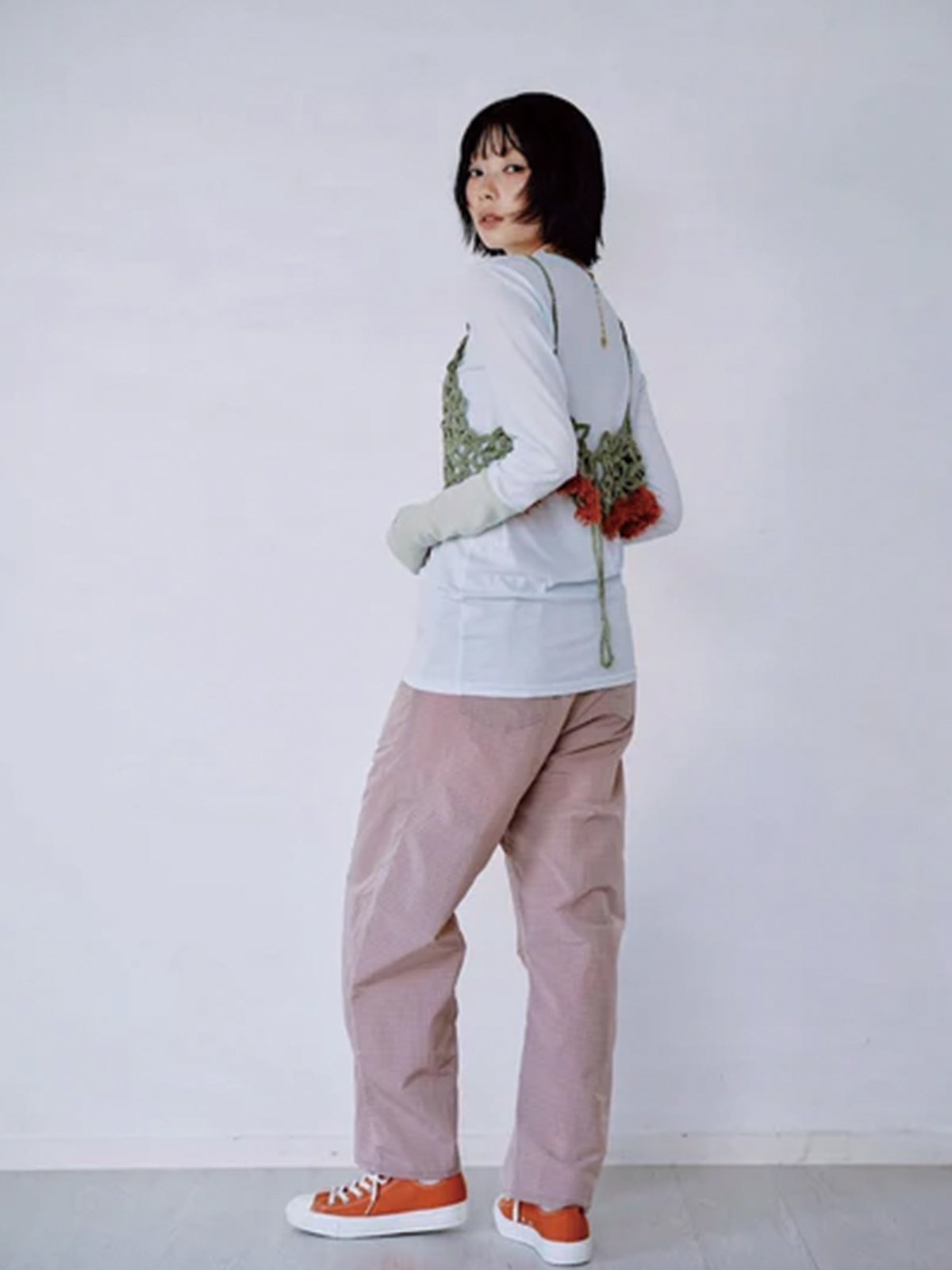 裾にファンシーヤーンを使用し、表情のある仕上がりに。