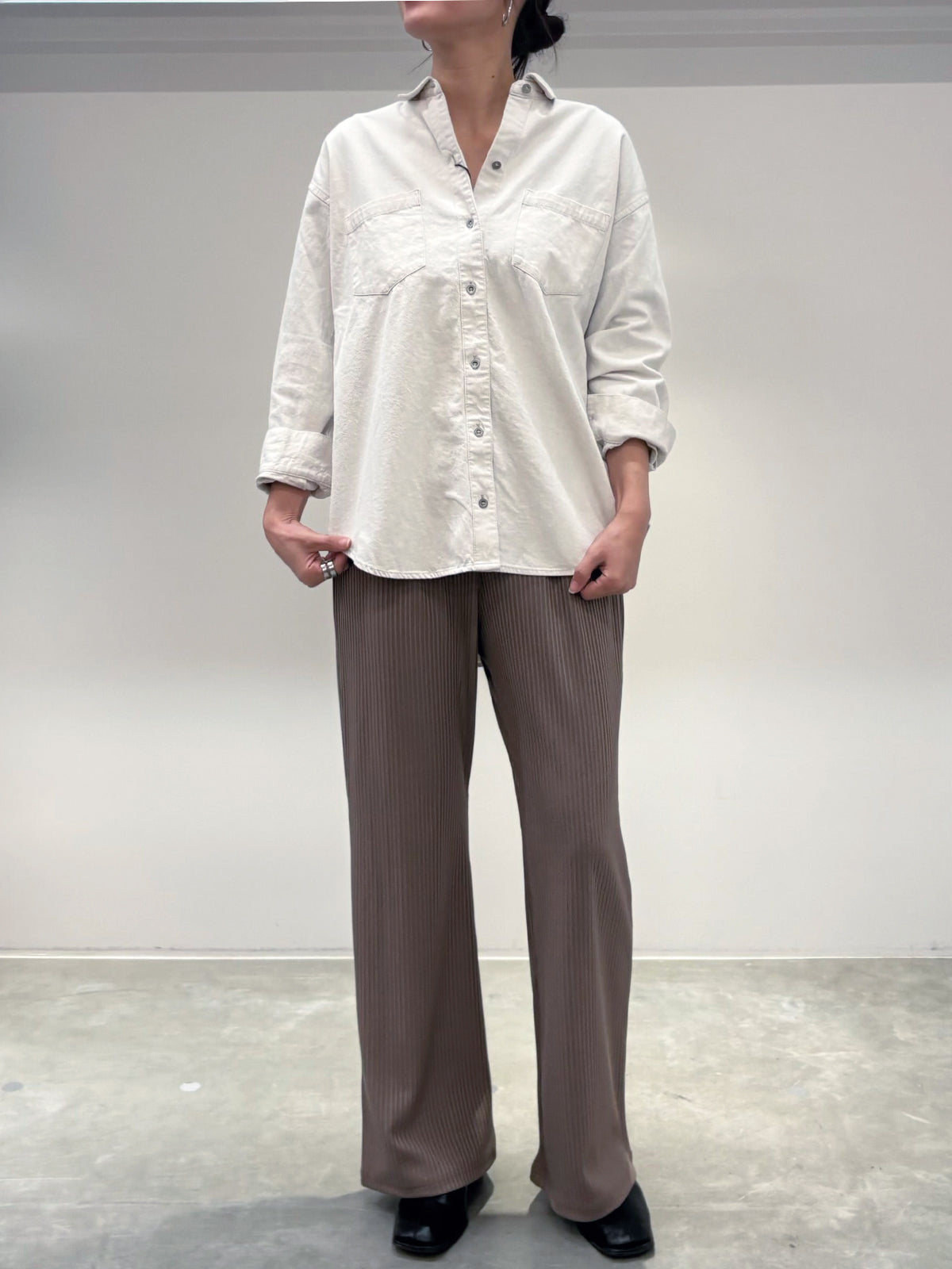 ブリーチ加工で柔らかく仕上げた風合いは、羽織りやすく毎日使いにぴったりです。