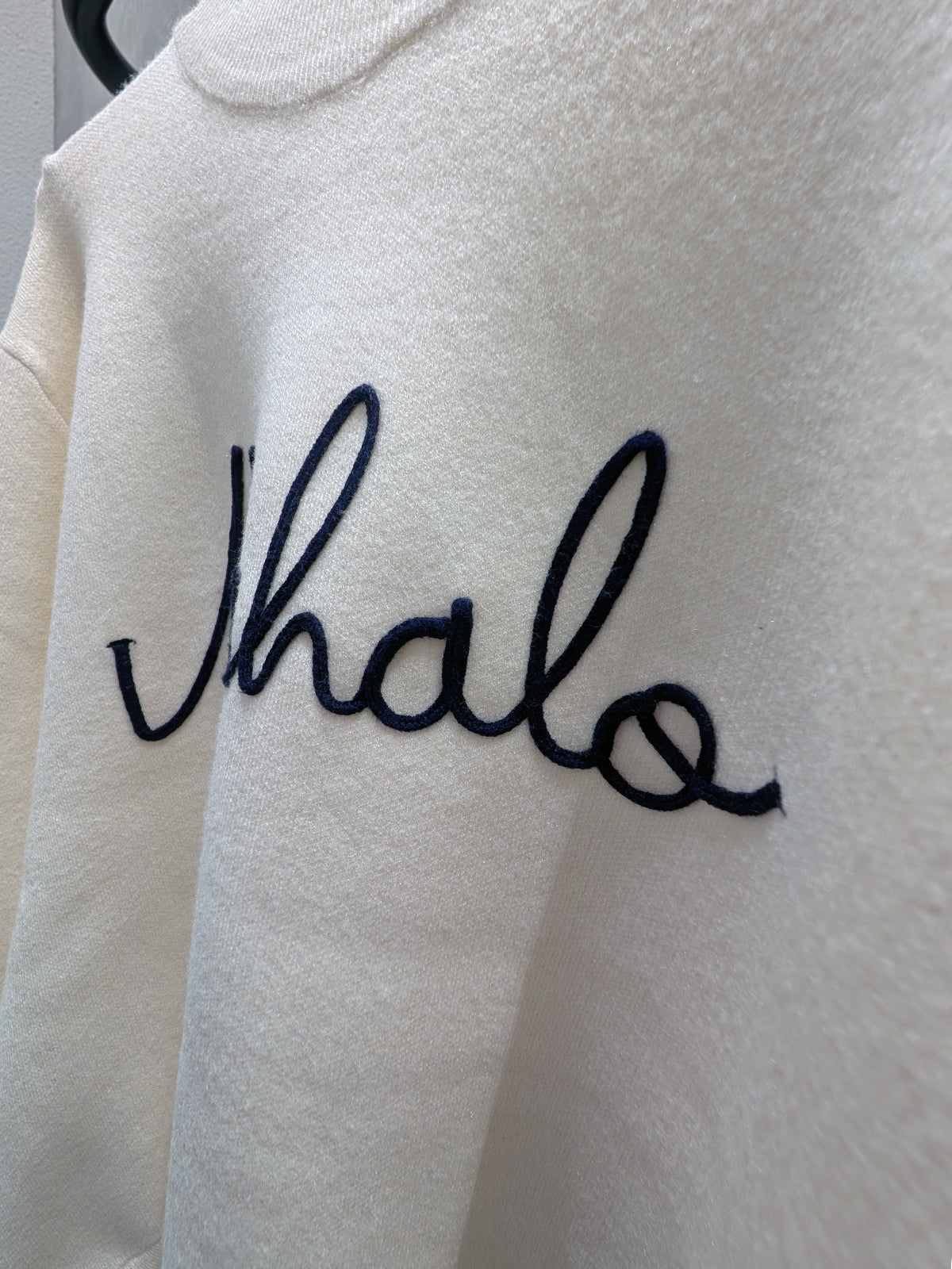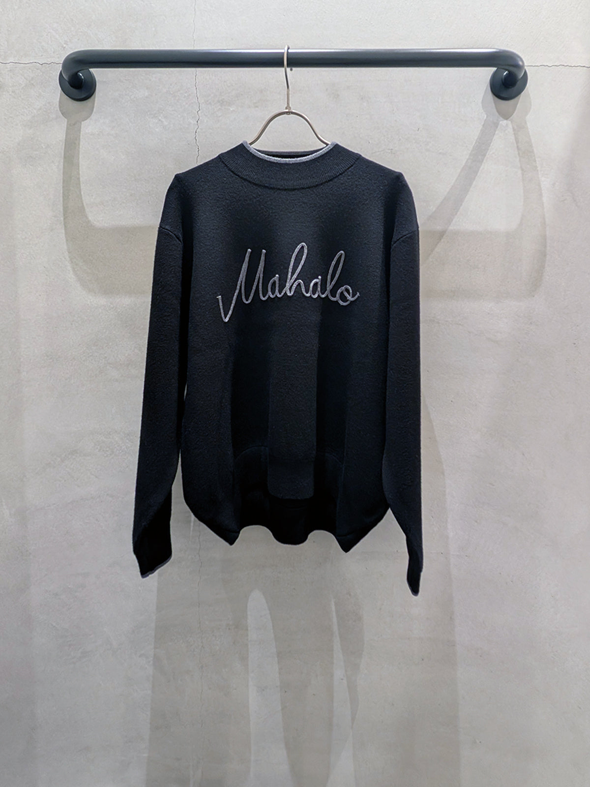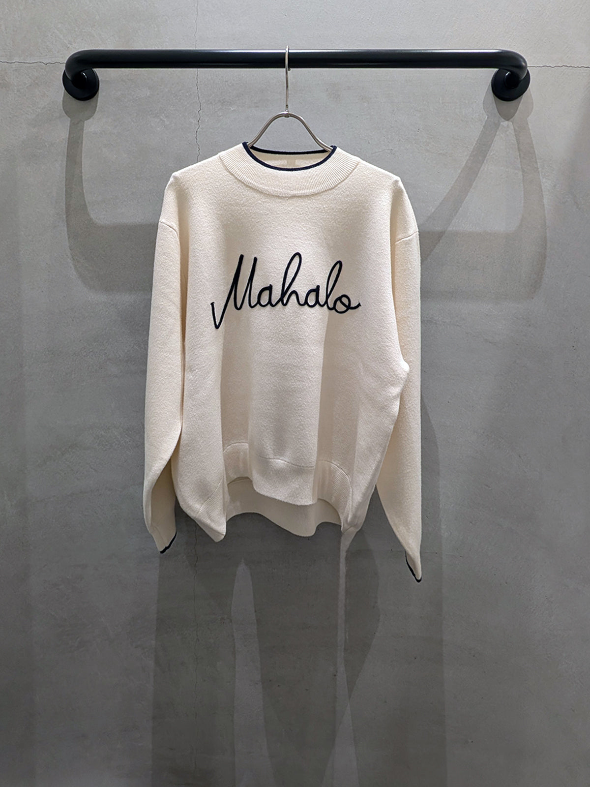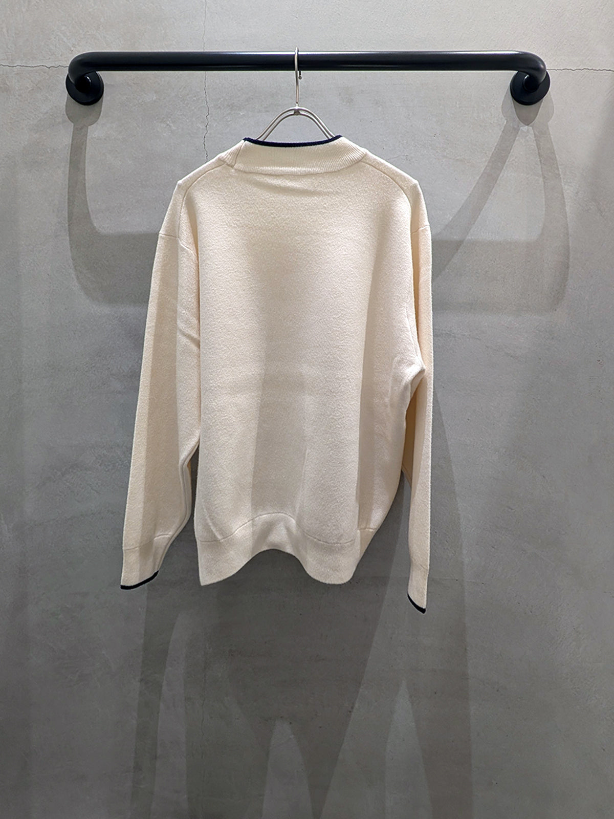 着心地の良いジャガード編みのニットトップスに、コード刺繍風のロゴうを入れた、トレンド感のでる1枚。