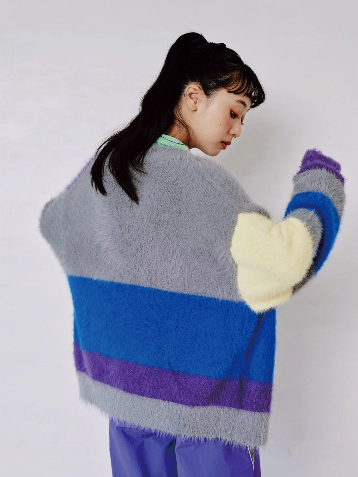 MULTI COLOR SHAGGY KNIT CARDIGAN