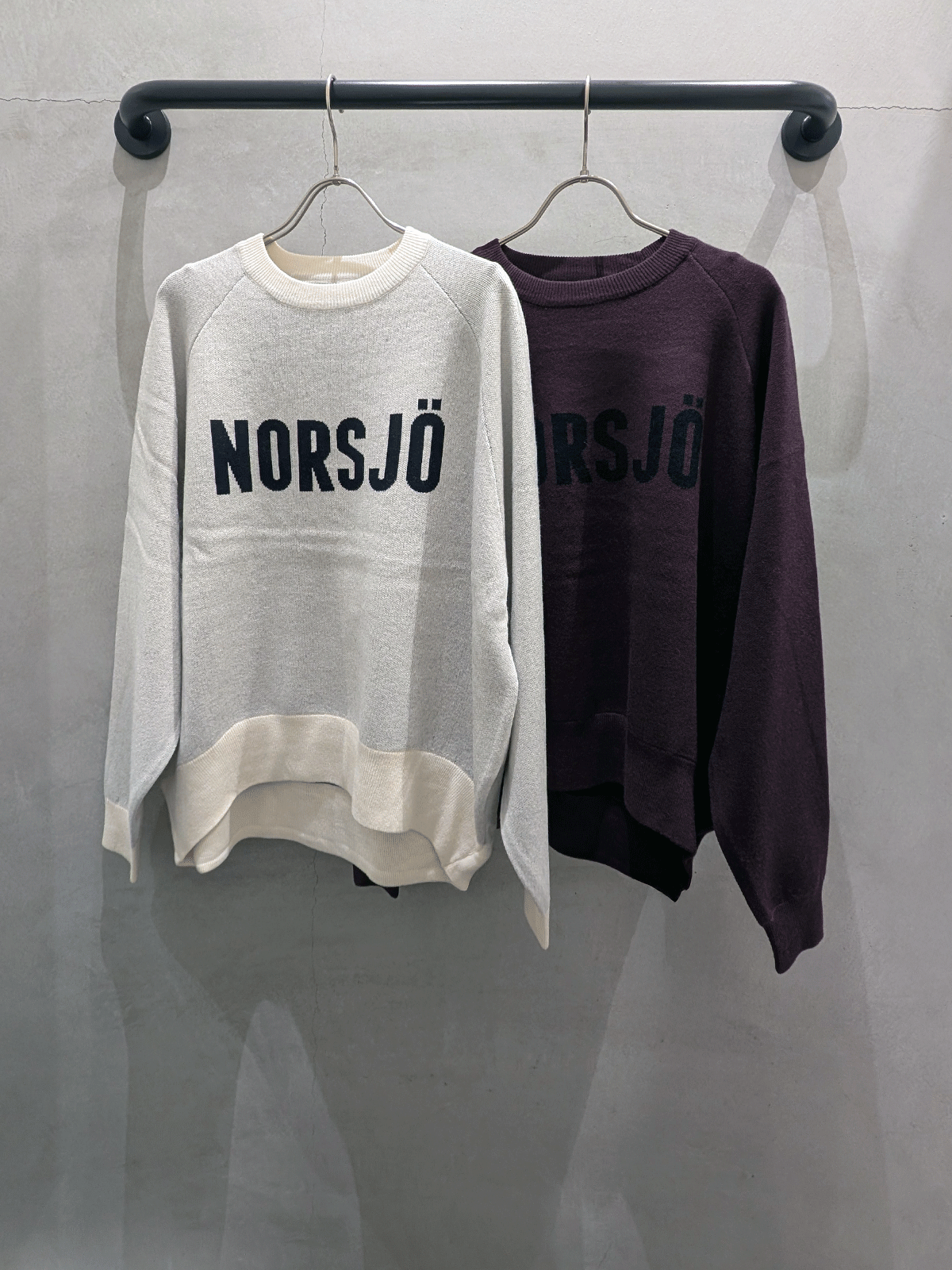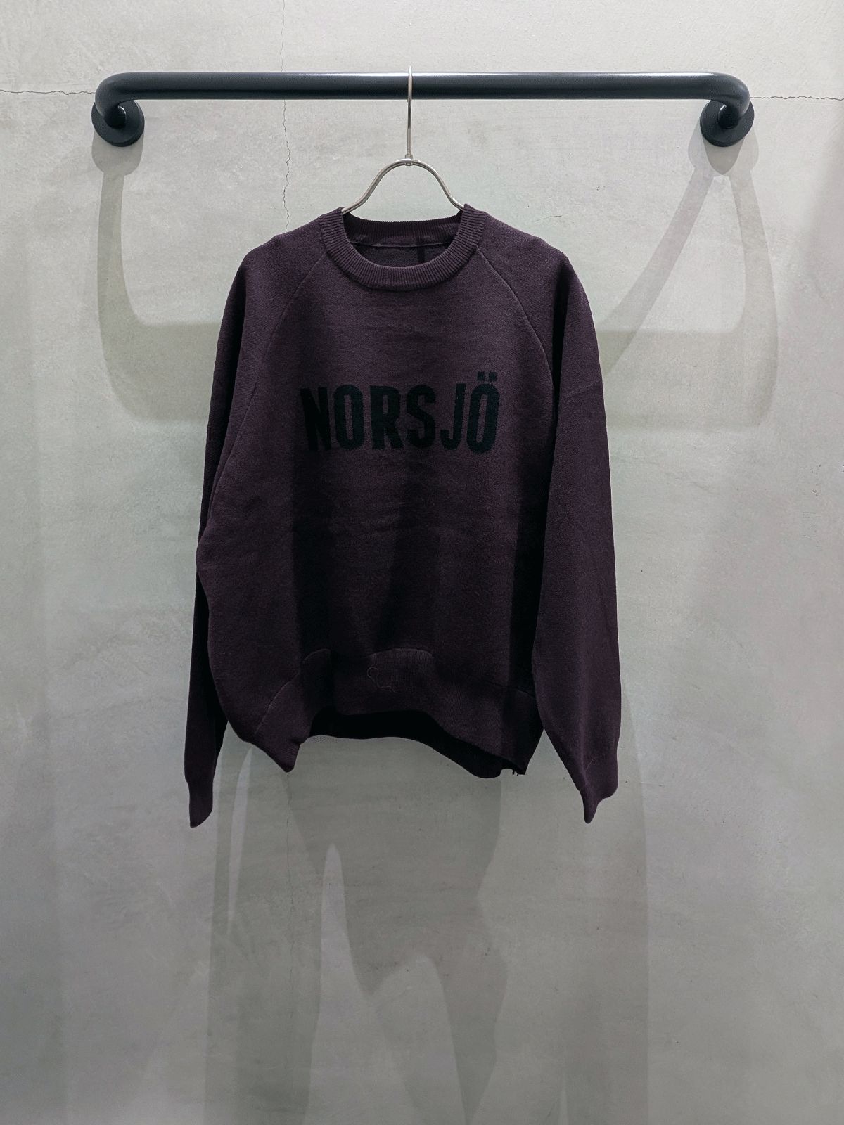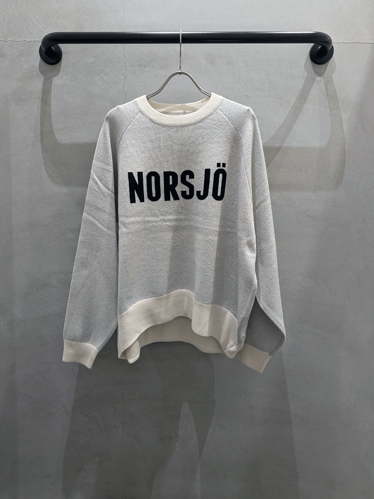 定番人気の、ジャガードロゴニット、クルーネックトップス。