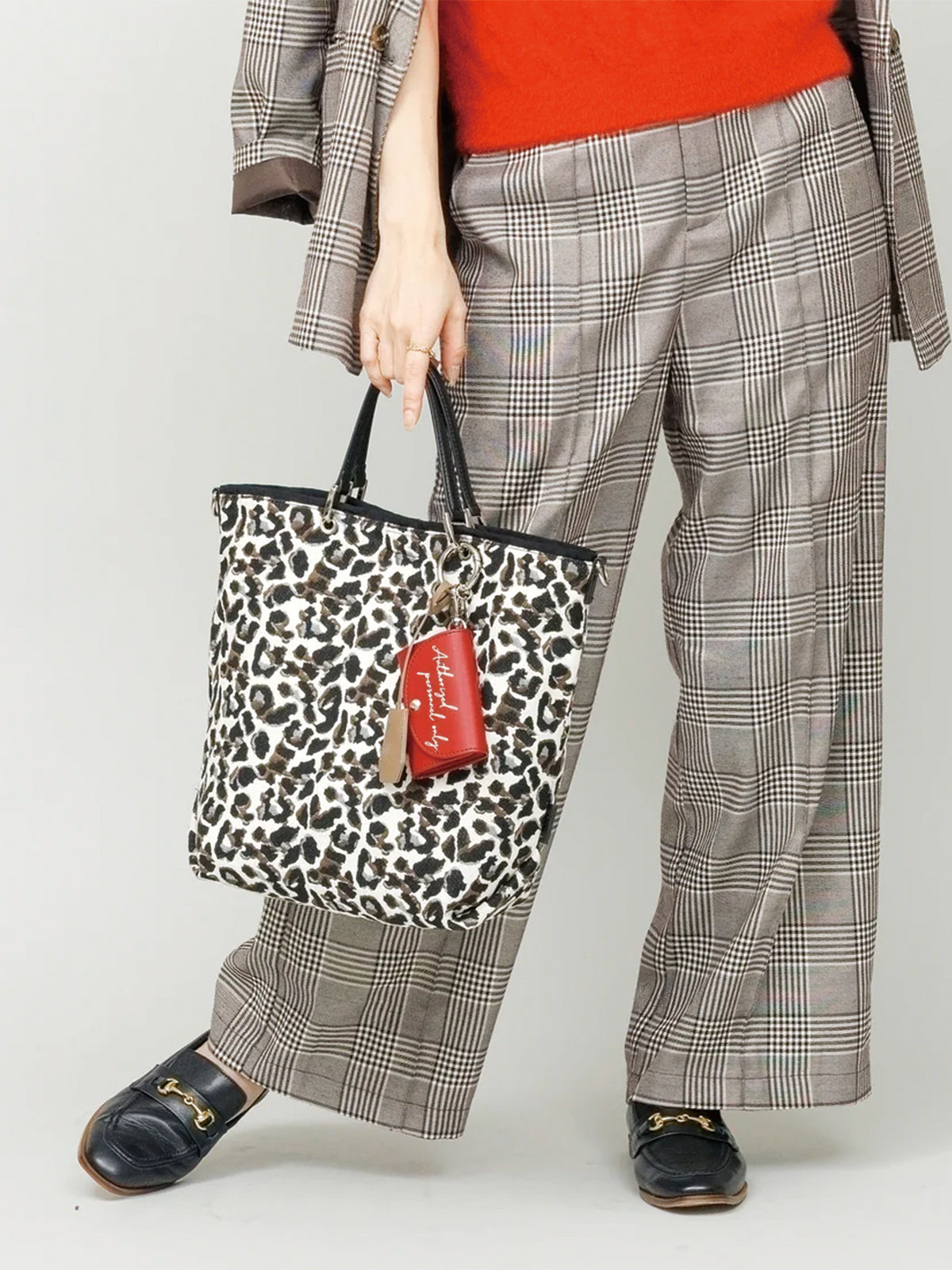 シンプルなデザインはデニムからスカートまでコーデを選ばない、デイリーユースなミディアムサイズのトート。リバーシブル仕様で、合わせやすいベーシックカラーとスタイリングのアクセントになるアニマルパターン。