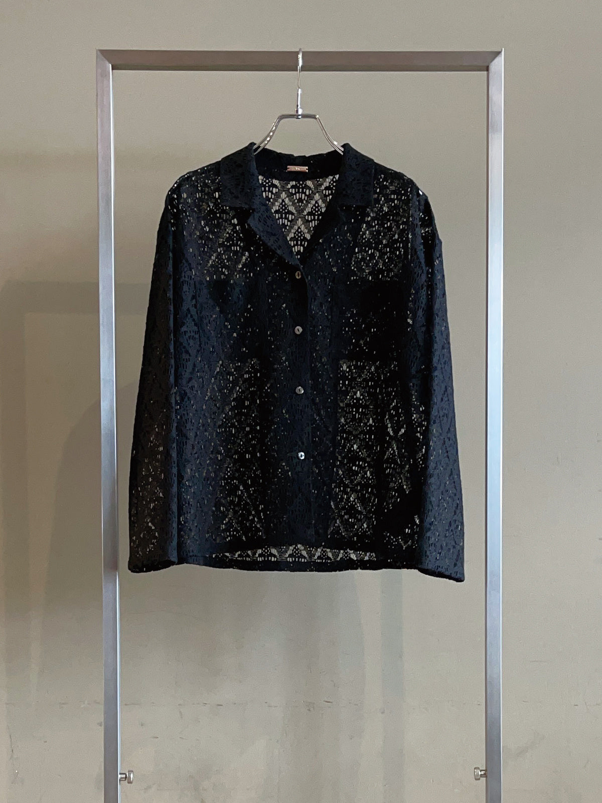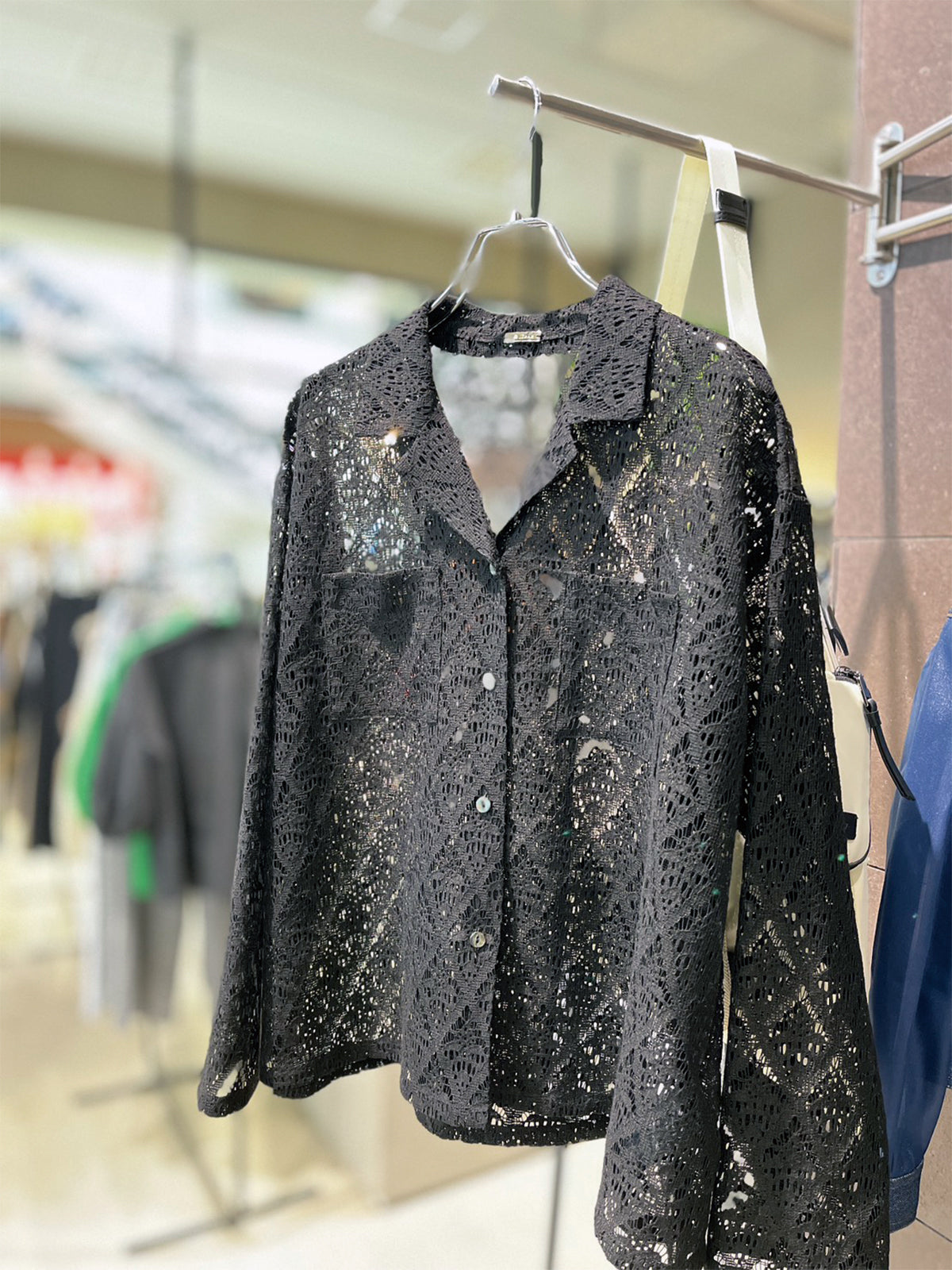 麻×ポリエステル素材で仕上げた軽やかなレースシャツ。