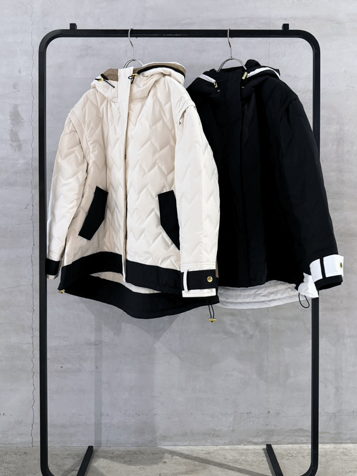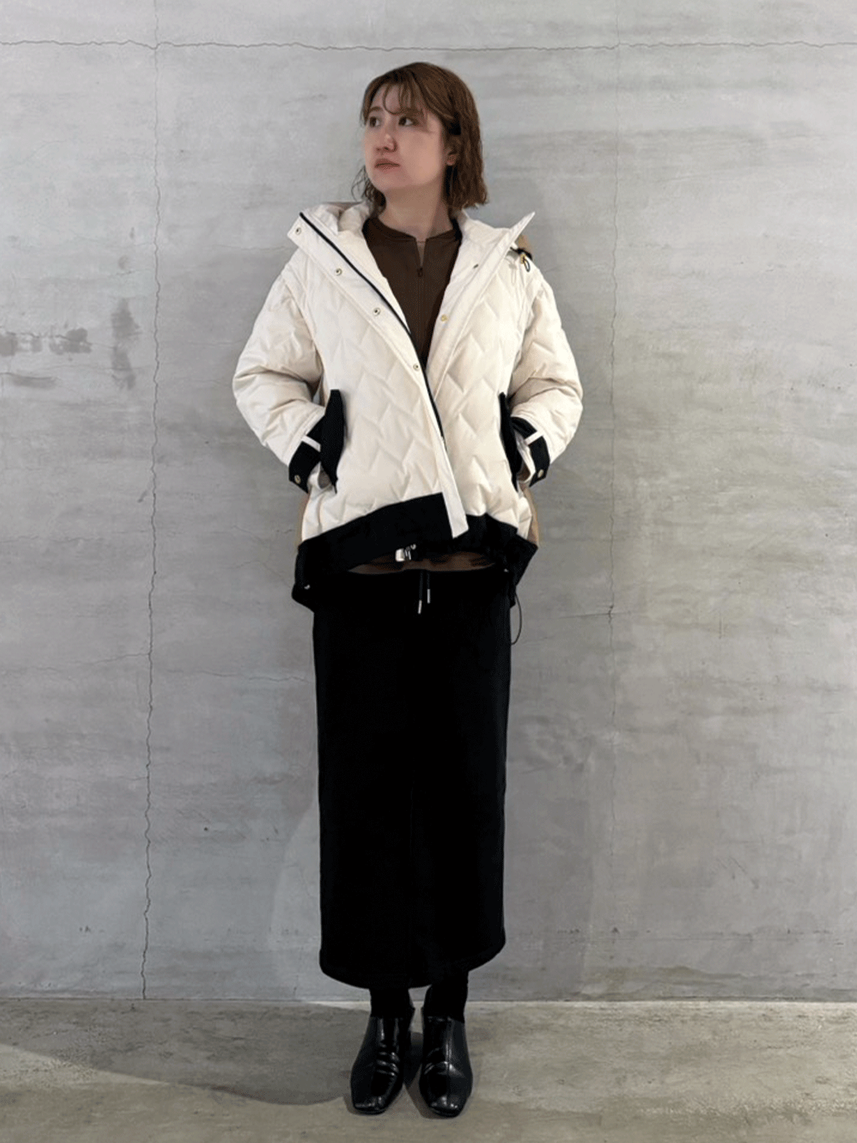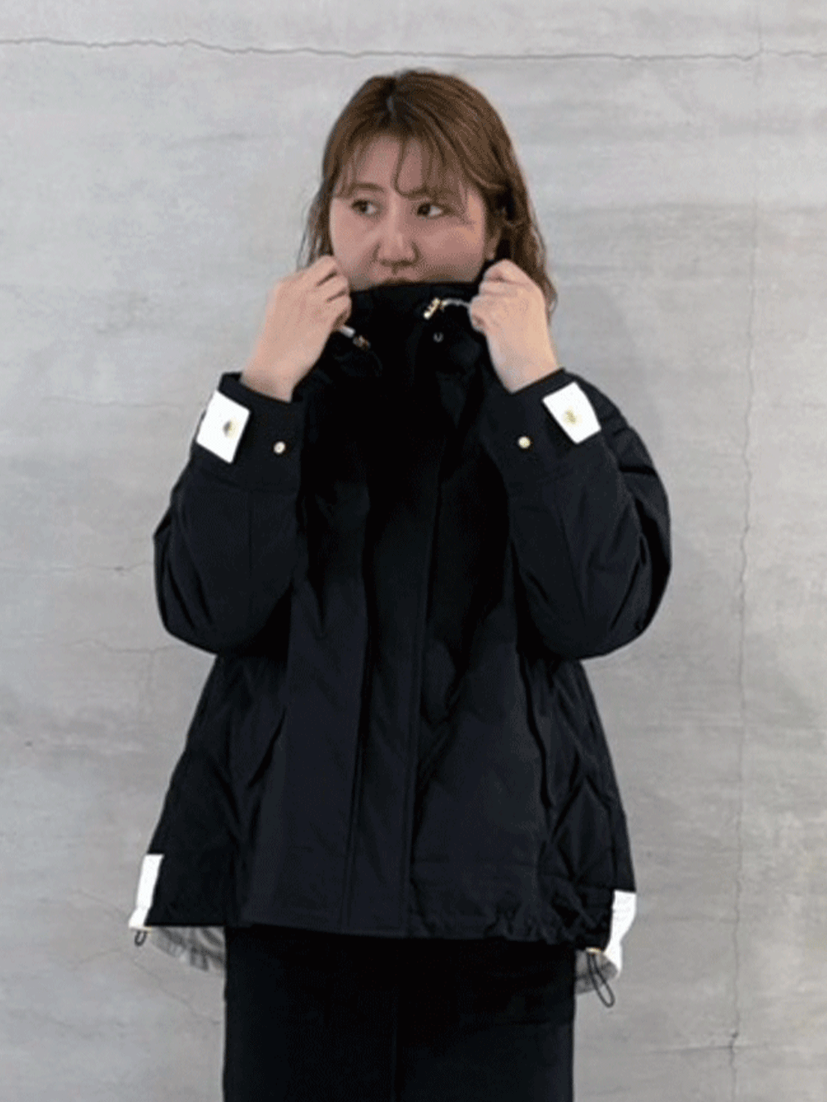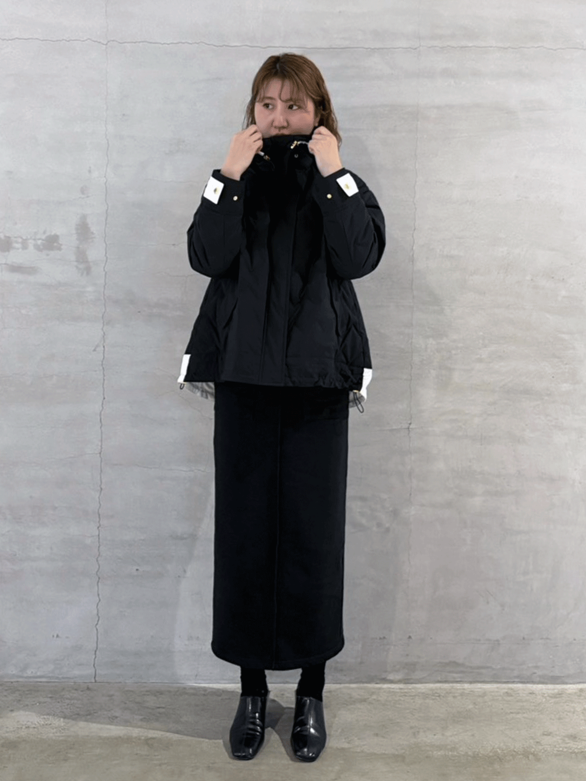 裾のドローコードでキュッと絞れば、丸みを帯びた可愛らしいシルエットに。