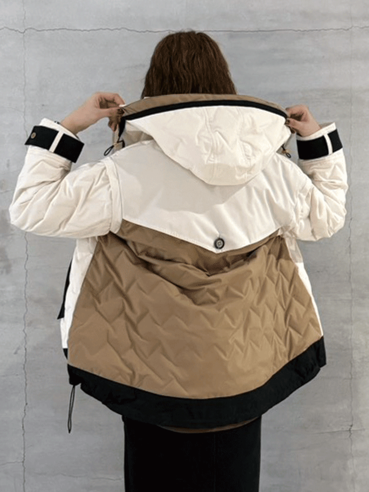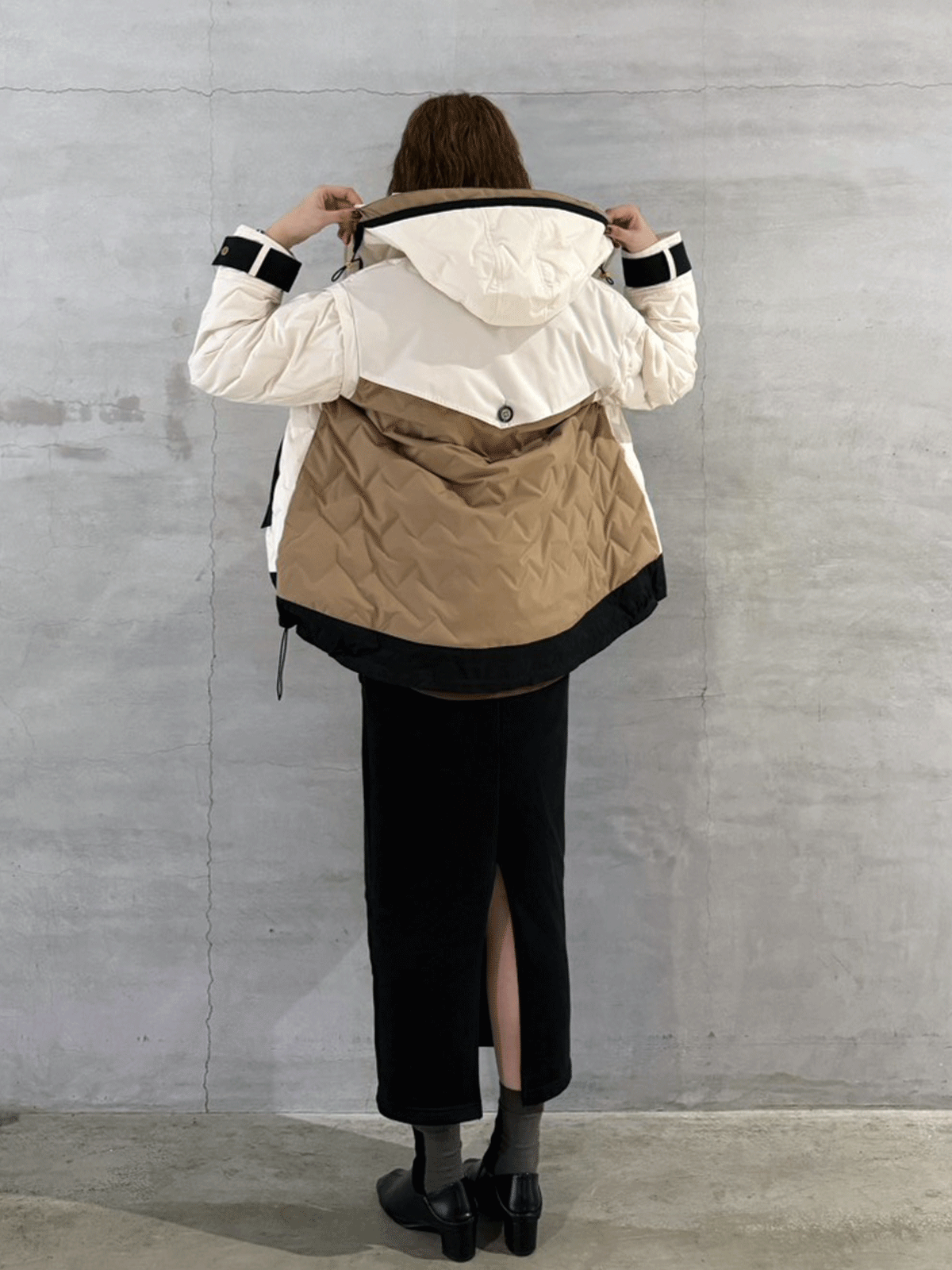 Aラインの立体的なシルエットが魅力的なダウンパーカー。