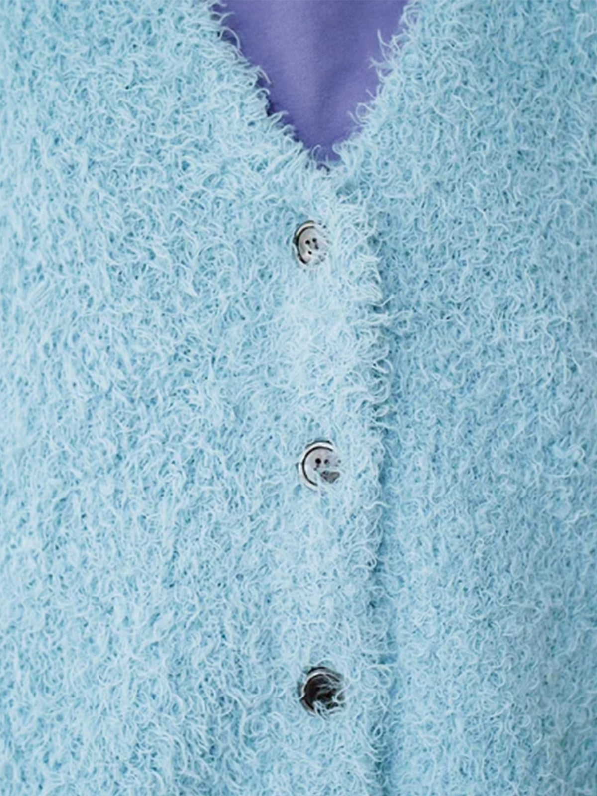 /毛足がカールした糸を使用し、モコモコ感が可愛いアイテム。